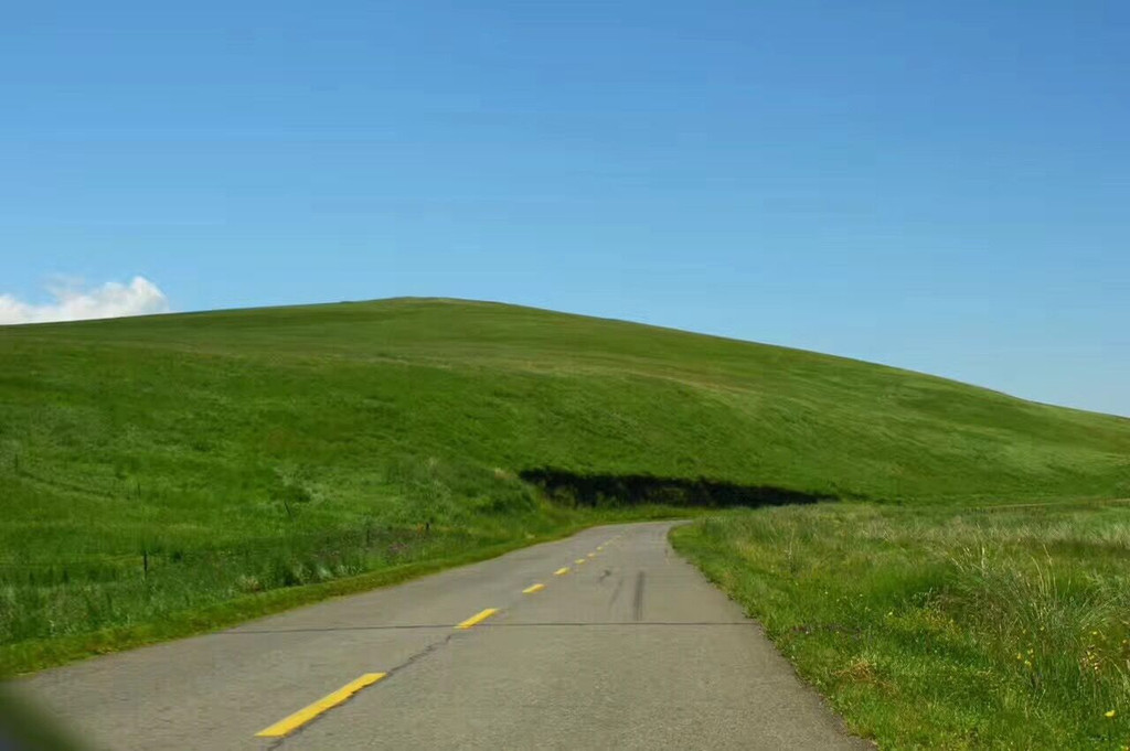 行驶在穿越草原的道路上,这里没有高楼,没有大厦,没有喧嚣,没有嘈杂,有的只是点缀在绿色海洋中的小精灵玩耍时发出的窃笑声。