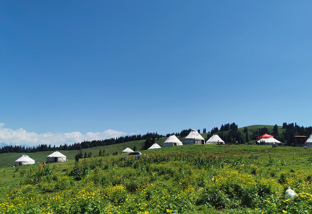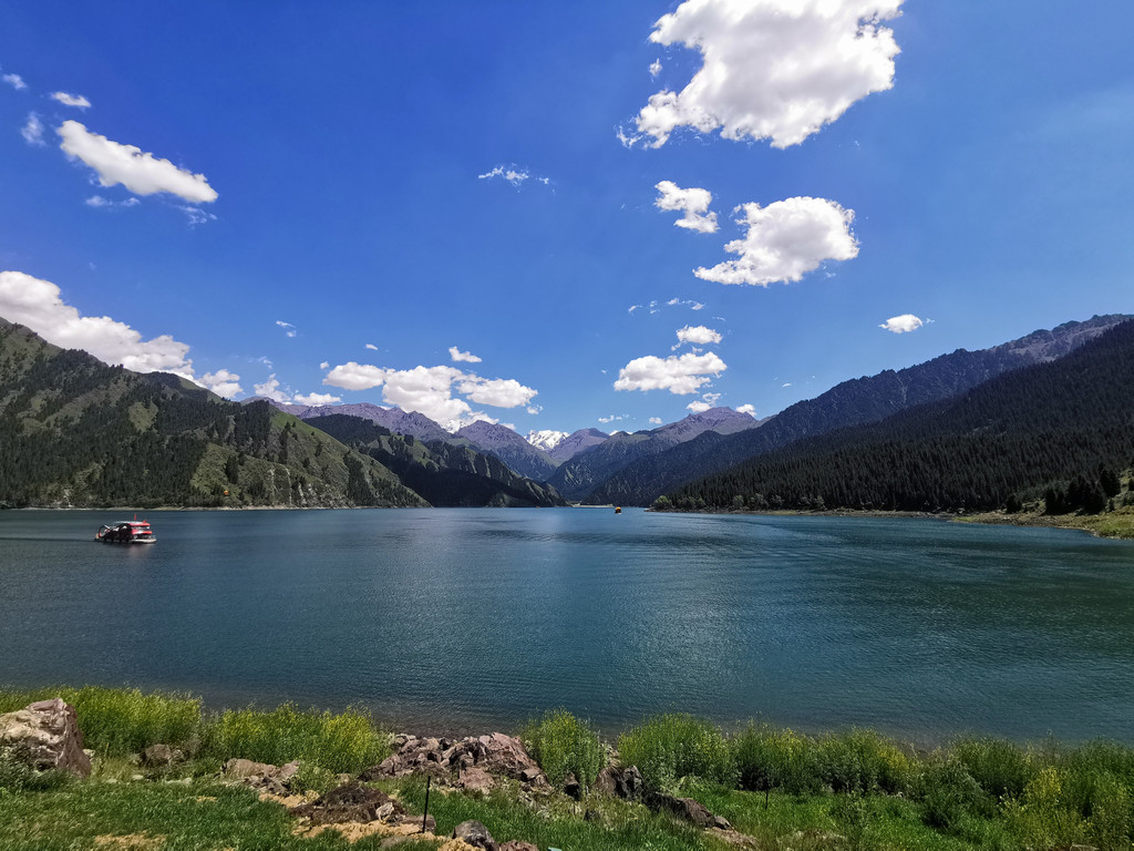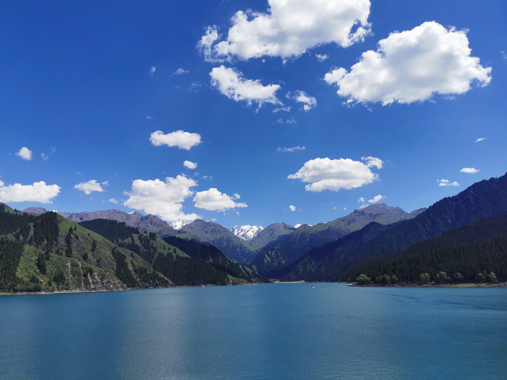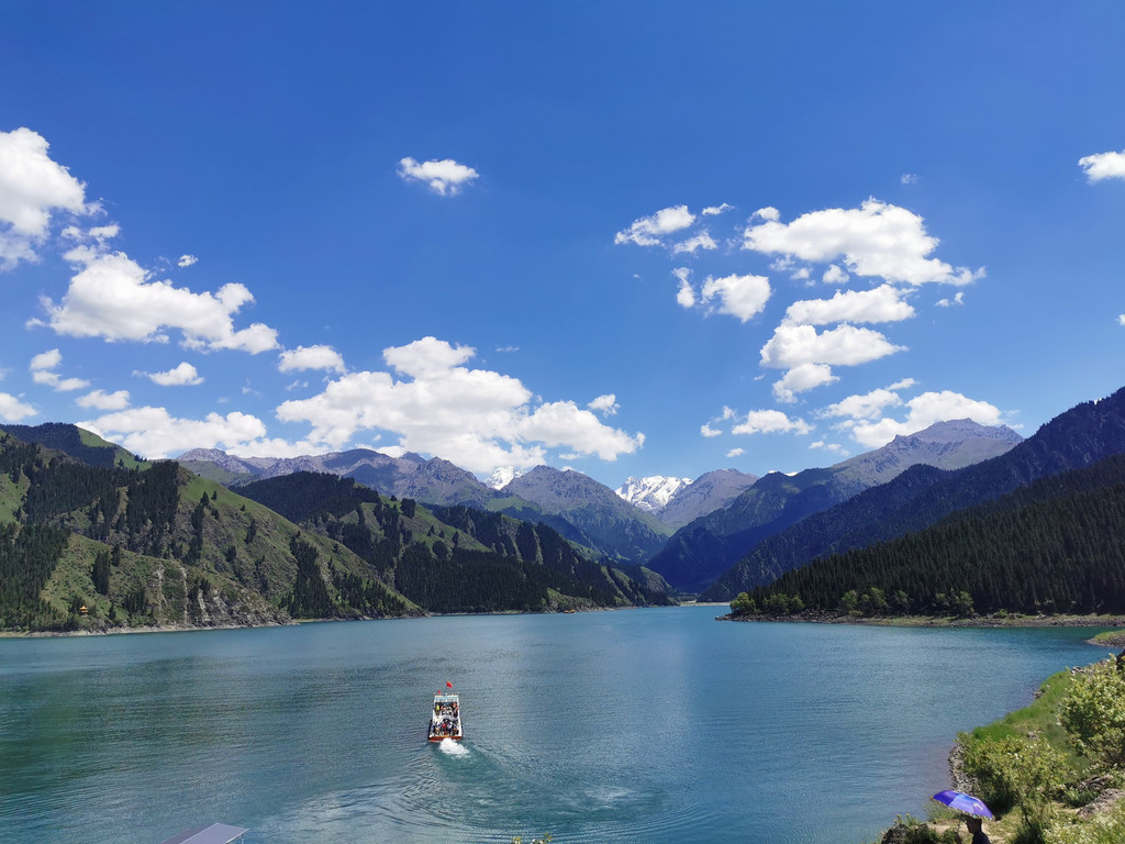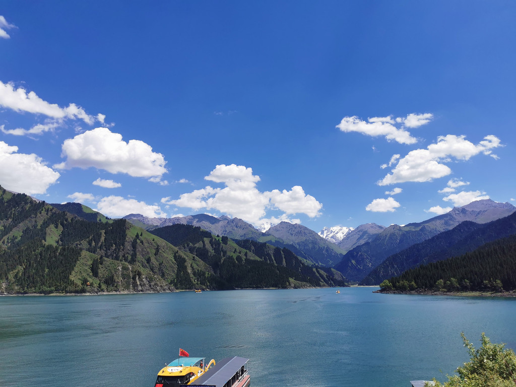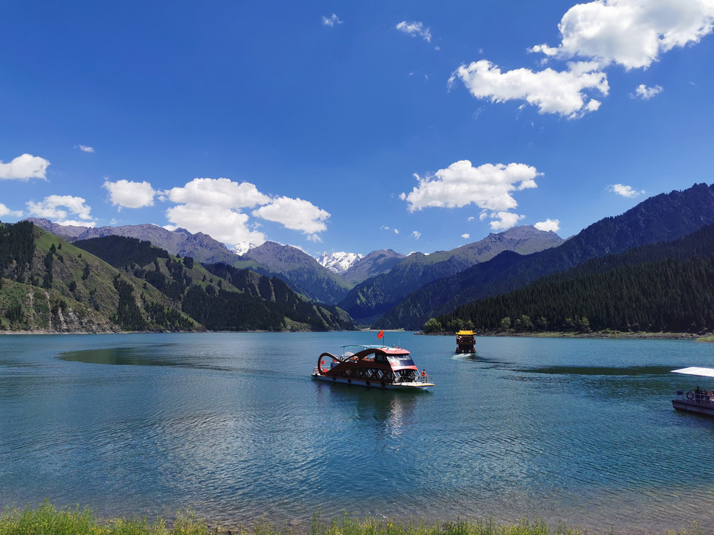 天山天池是来新疆必须要去的地方,湖水清澈,晶莹如玉,四周群山环抱,绿草如茵,野花似锦,