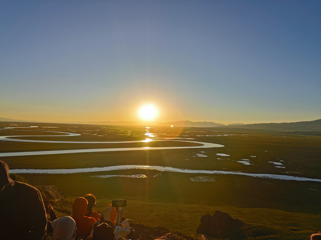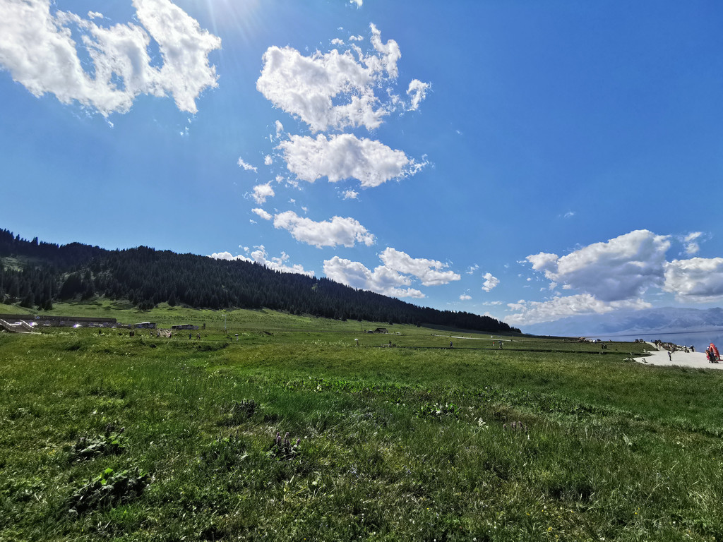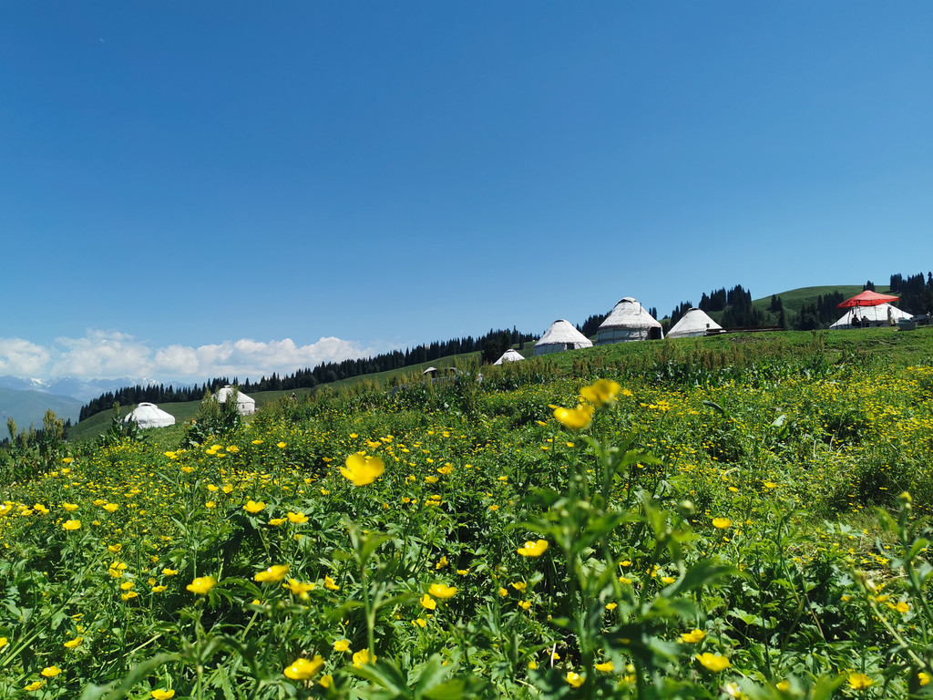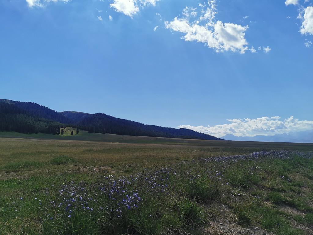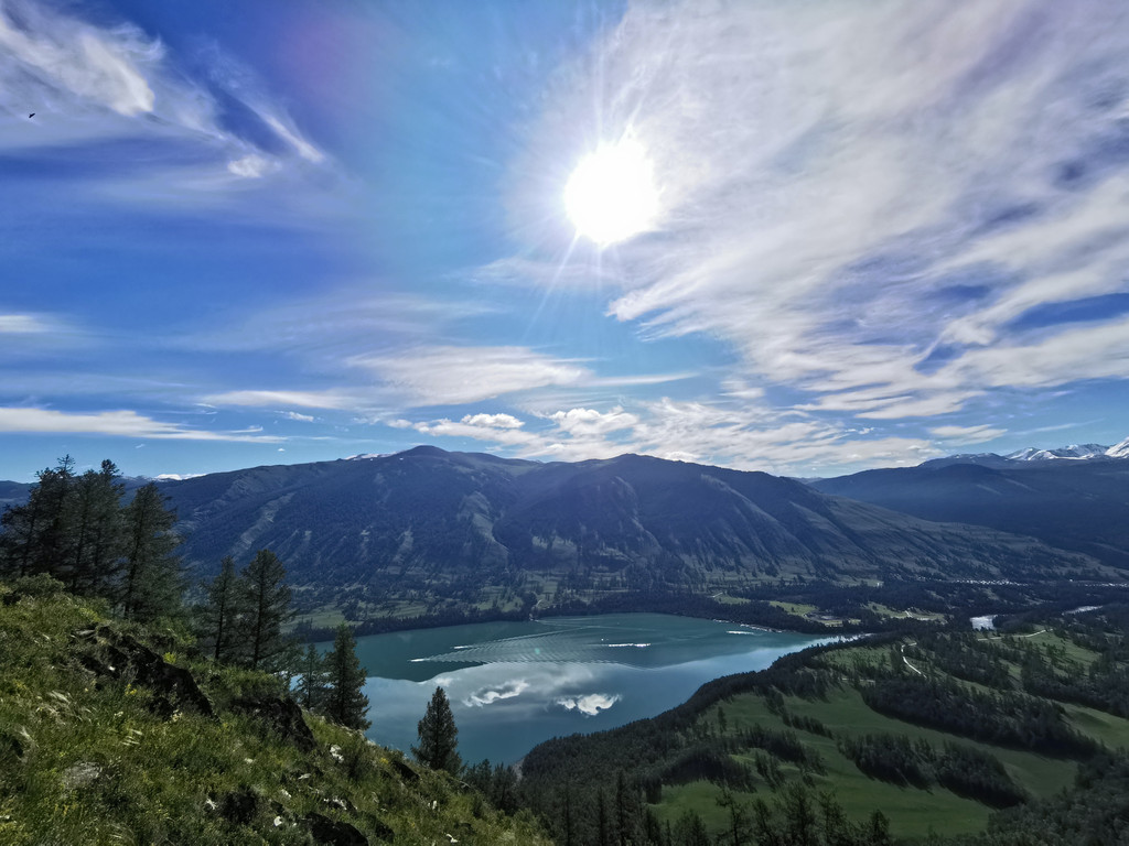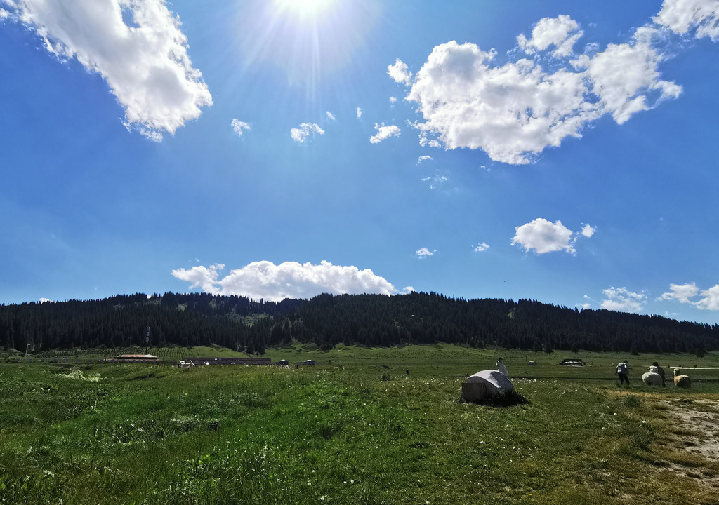 也许来到了禾木,你就不会想走了,如果用成语来形容就是炊烟缭绕,鸟语花香,牧羊成群,幸运的是当天晚上就住在这里,日出升起的时候,就像是置身于童话世界里一样,登上禾木观景台。一览整个禾木的美景。雪峰,森林,草地,鲜花满天,蓝天,白云。禾木的全景尽收眼底。