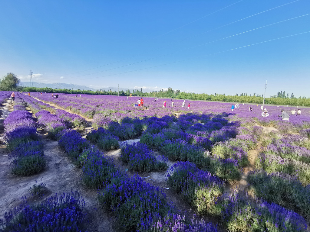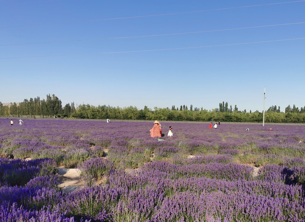 伊犁薰衣草在每年的六月中旬进入盛花期,下旬便开始收割,花期非常的短暂,想来看花要提前了解花期。提到薰衣草,其实大家的第一反应都是法国的普罗旺斯,世界的薰衣草之乡,早已是闻名大众,新疆的伊犁是和普罗旺斯地处在同一地球纬度上,气候和土壤也是条件相当,环境非常适合薰衣草生长,是中国唯一的薰衣草生长基地,是东方的普罗旺斯。解忧公主薰衣草园;它位于古丝绸之路的北道重镇新疆伊犁清水河镇,地处天山北麓伊犁河谷。有“中国薰衣草之乡”的美誉。大巴车行驶进入清水河镇,在马路的两侧就能看见大片大片的薰衣草农田,紫色的花海惊喜连连,空气也弥漫着薰衣草浪漫的味道。沿途有赛里木湖环湖、果子沟大桥,赛里木湖环湖60余公里,蓝天碧水适合拍照。