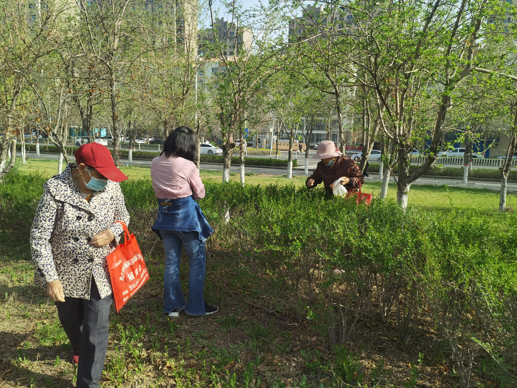 20日,今天下午就要离开大美新疆,上午在酒店边的公园转一转,发现当地阿姨在公园里采摘刚刚冒头的红花锦鸡儿的花蕾,说是摘回家凉拌着吃。