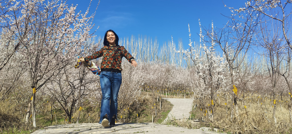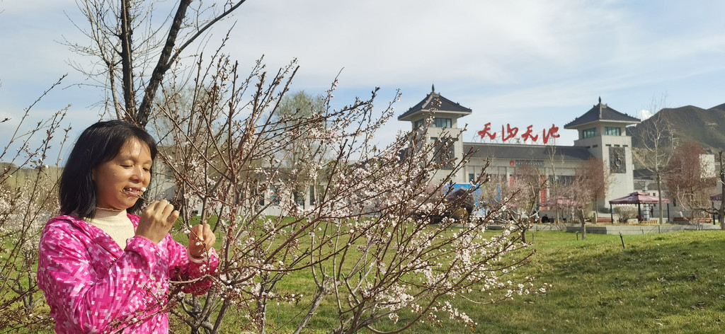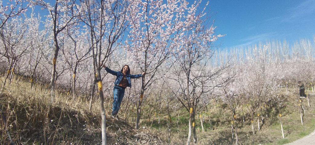 19日上午,我们一行来到乌鲁木齐红光山景区,这里的杏花开了漫山遍野的,犹如白雪似的