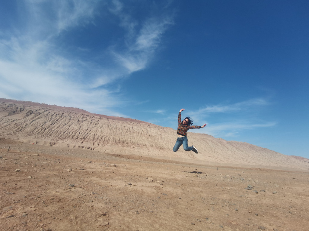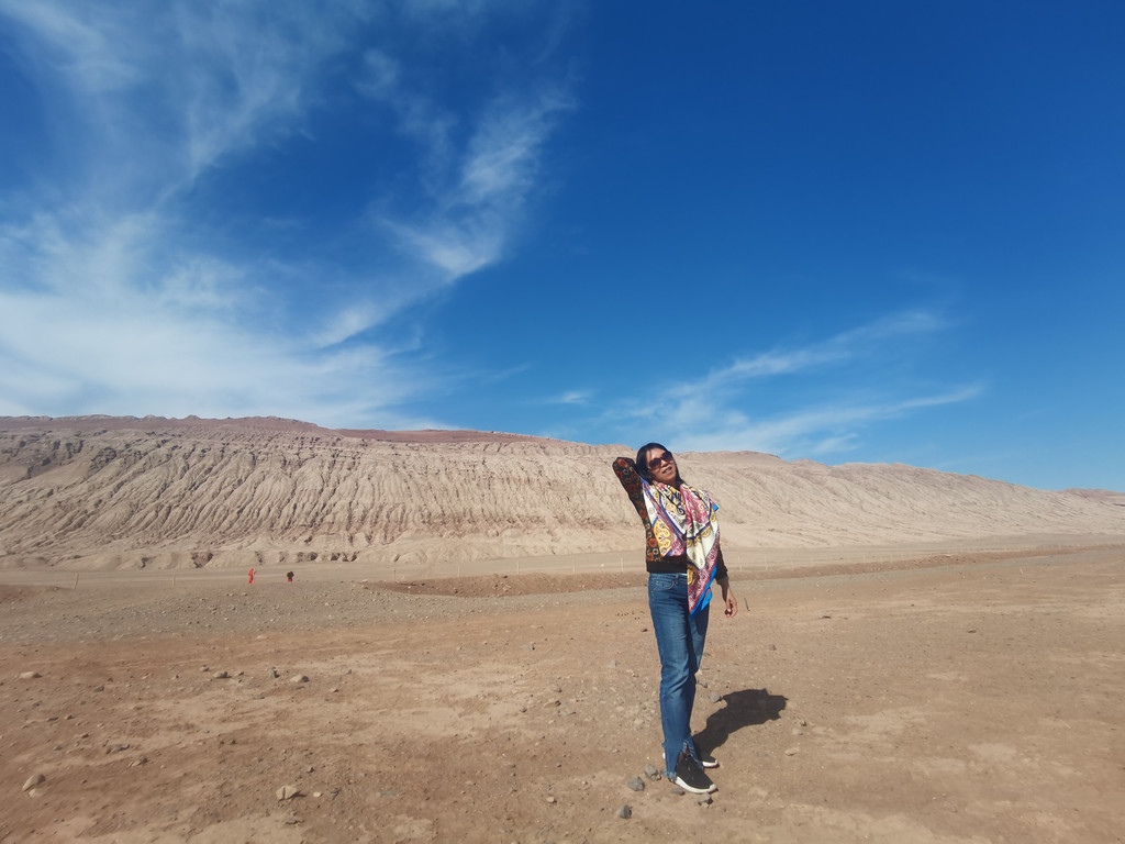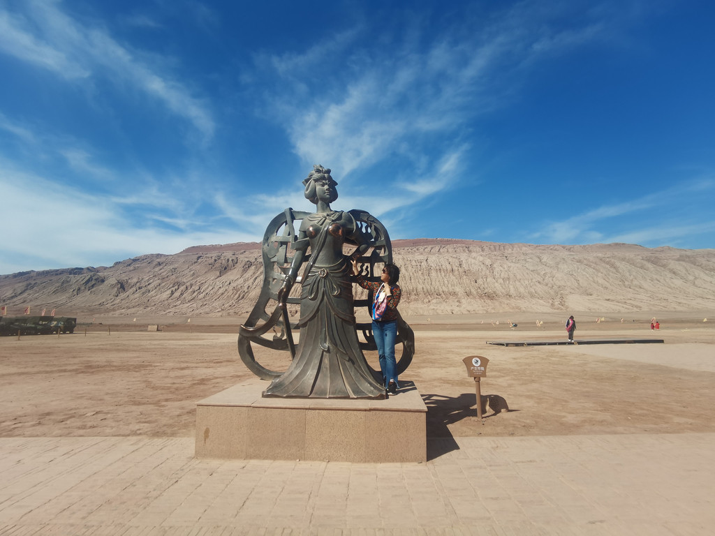 我们游玩时间4月中旬,在新疆仍然算是初春,但金箍棒温度计显示的地表温度已达50度了,炽热的太阳下,我们在地面上玩了一下就赶紧回地下层去了,真不知道在盛夏期间来的游人们是怎么游玩的,那时在太阳下游玩,估计不一会就能闻到烤肉的味道了。