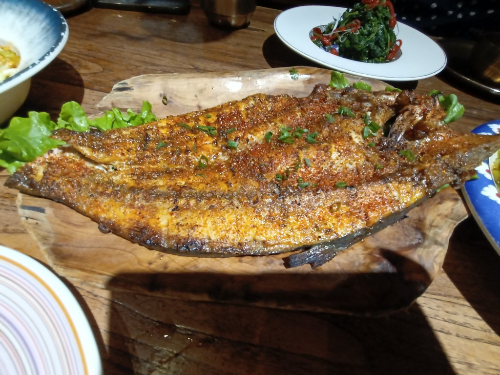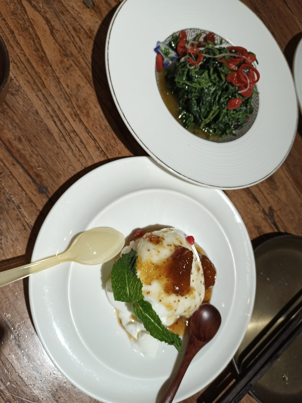 我们来到才五点多,还没什么客人,餐厅装修得像一座古堡,各式窗户,廊柱,镂空围栏,繁星满天的夜空,充满了浓厚的西域风情。在大厅选了个位置坐好,点了楼兰小烤肉 、孜然羊排 、羊肉串、 架子肉 、烤鲈鱼 、黄面凉皮、 楼兰烤包子、楼兰烤羊腰子、野葱炒蛋、酸奶粽子,不愧是新疆的招牌烧烤店,小烤肉 、孜然羊排 、羊肉串、 架子肉 、烤鲈鱼都非常嫩香,烤羊腰子与我们深圳的做法不同,它是腰子包着肉,都超级好吃,烤包子外壳脆脆的,但肉馅儿多,咬下去一口爆汁,酸奶粽子也是超级无敌好吃,吃完肉后吃它会很解腻,没尝过的一定要试试。