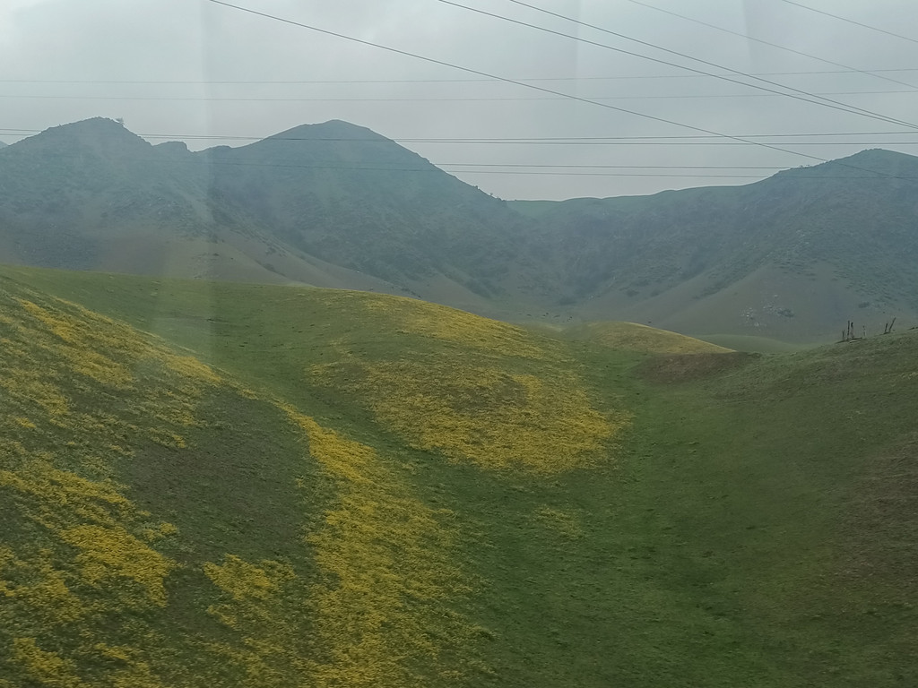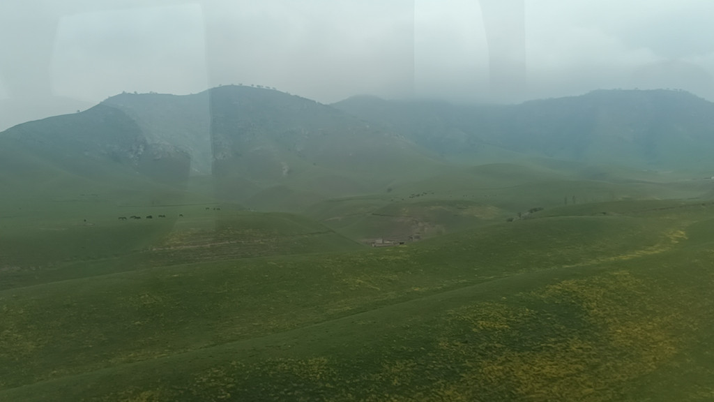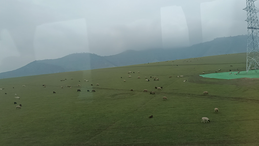 我们从天峡云景台--天界台--游牧人家一路游玩,时间一晃就到了12点,天空飘起了微微细雨,我们快快走到车站,走上区间游览车往回走去,午饭时导游说景区里已下起了大雨。午饭后我们就奔向伊宁而去。望着车窗外,只见沿途牧场草地上开满了黄色、白色,紫色的小花,看着遍地的野花、成群的牛羊,美丽极了,都说最美的风景是在路上。