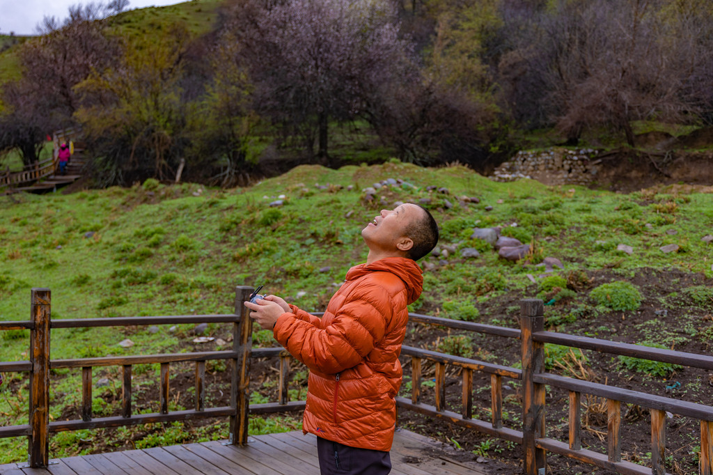 17日,今天的景点是大西沟,下了整晚的雨在我们进了进去之后也停了,我们在昨晚还特意跑去买了雨衣。这里是新疆的野生酸梅/苹果/桃子林的分布区,每当杏花/野酸梅/野苹果/野桃子等开花的季节,每一个山峦都被开满了花朵的野果林所装扮,有粉红的,深红的、浅紫的,在绿野的衬托下,显得更加娇媚,同时亚洲独有的珍惜野生林果樱桃李也在此处,这里都会变成了摄影师的天堂。