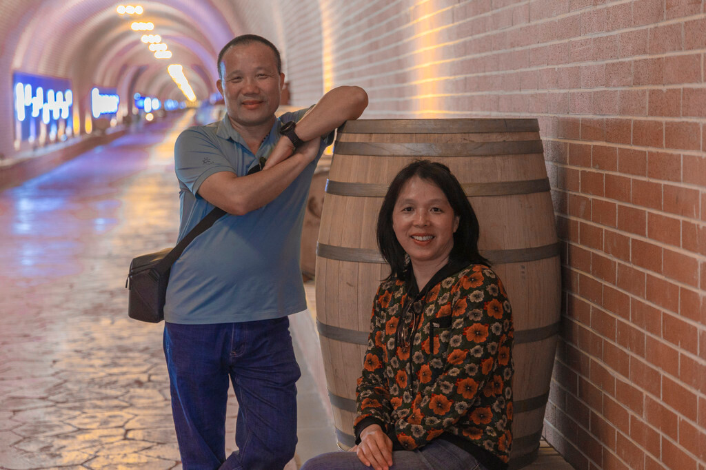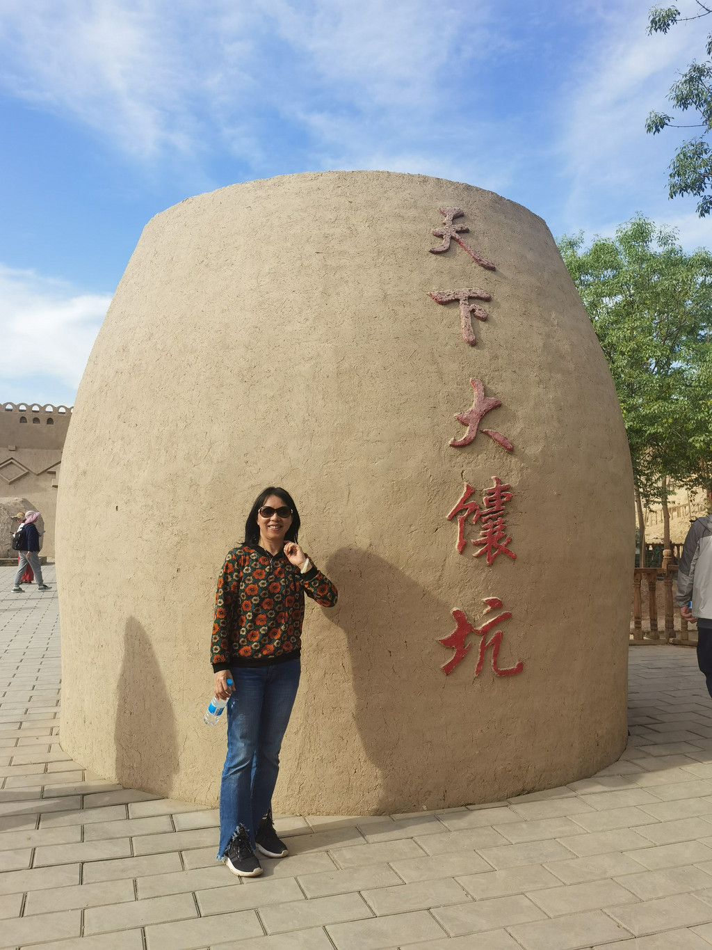 中午在吐鲁番“零海拔”酒庄吃饭,酒庄给我们赠送了一壶他们自家的红酒给我们品尝,还用游览车带我们去参观了他们的地下酒窖,酒窖很大,单地下通道来回就有六公里长。参观酒庄后就直奔火焰山而去。