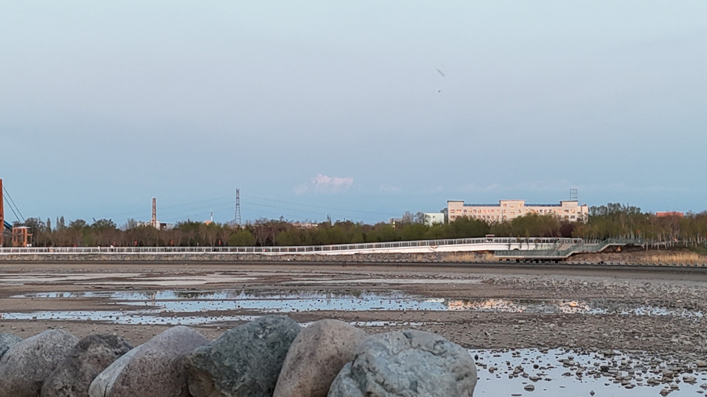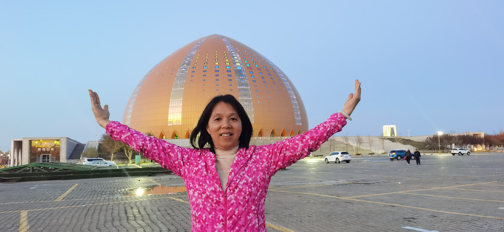 在晚间回城时,我们一直在车上往车外看着天山主峰-博格达雪峰,隐隐约约的影子使我们对是否可以看到日照金山产生了兴趣,在酒店下车后,立马坐上已预约等候的滴滴快车,往新疆大剧院奔去,很可惜,因天黑时天气还是不太好,我们还是没有遇见这一美好的光景。