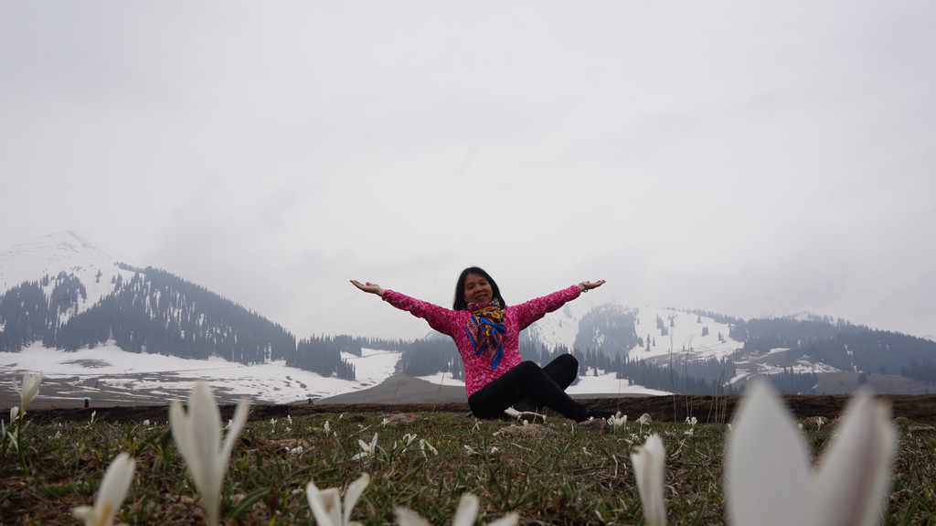 那拉提大草原盛开的野百合在涓涓雪水的滋养下悄然绽放,野百合又名顶冰花,因花顶着冰雪开放而得名,草原上的冰还没有全部消融,但顶冰花已顽强的向我们盛开,遍地都是白色的小花朵。我们在这美丽的大草原上放飞无人机,随着无人机升上半空,我俩奔跑在辽远的草原上翩翩起舞,似哈萨克族的自由奔放一样毫无忌惮的飞翔。
