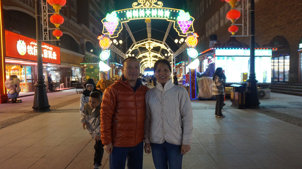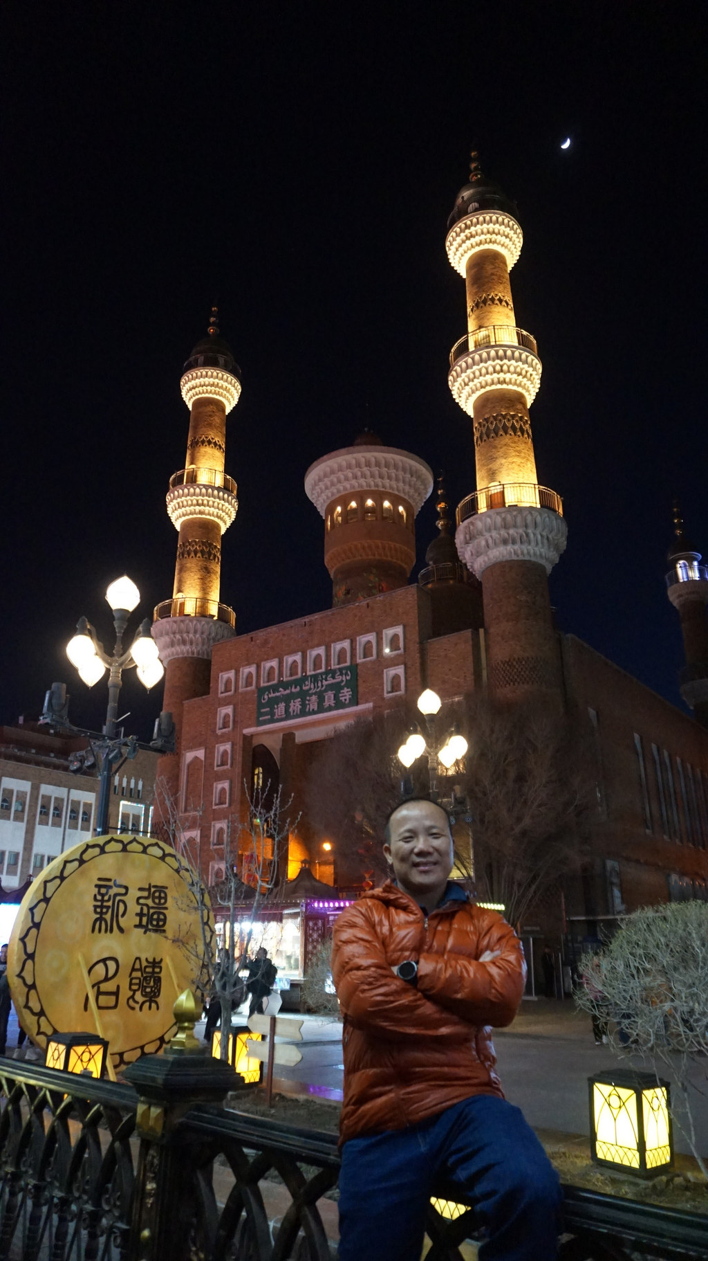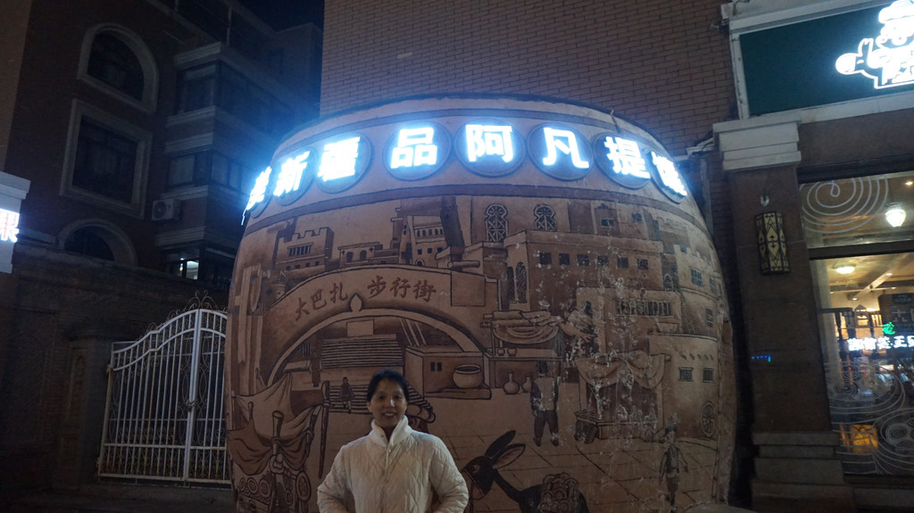 吃完这完美的一餐,回到朋友家喝了一会茶,我们来到大巴扎已快10点,此时游人不算多,因大巴扎不准飞无人机,过安检时我的无人机被留置在外了,我们就从天池路入口穿过新疆是个好地方的大棚道一路走到二道桥清真寺,广场中心矗立着高约100米的柱形新疆第一高塔——丝绸之路观光塔,观光塔内分布着古丝绸之路三十六国及新疆特色民俗文化的经典景致,塔内通过立体浮雕绘画及实物展陈的方式得以呈现,让拾级而上的游客朋友们,能够身临其境的感受到“千里不同风、百里不同俗”的民俗风情地貌,我们来的时间较晚,就没有登上塔顶去俯瞰乌鲁木齐城南的夜色,感受乌鲁木齐现代与民族文化的完美融合。