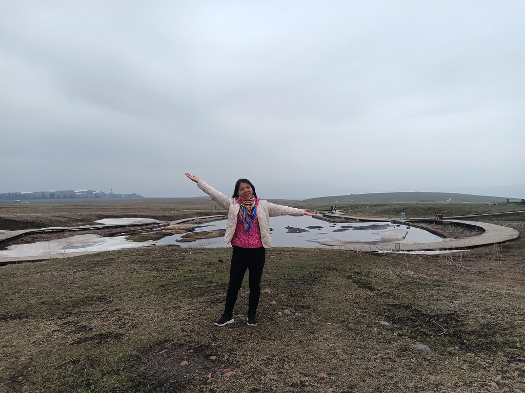 我们带着些许遗憾,一路慢慢的沿着木栈道向山顶部爬去,看史很矮的小山包,上下也用了近一个小时,急得导游给我们发信息催促上车。我们也只好快步下山,在芦花镇吃过午饭,返回车上继续赶路,今天的路程还比较远,500多公里路程要坐6小时车回到乌鲁木齐。