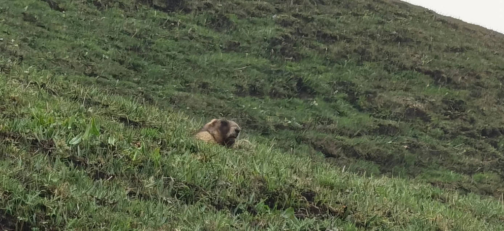 草原上有许多旱獭在路边忽闪出现,我们盯住较近的一只慢慢靠近前去,他发现我们后躲进洞里,我们在洞口外拍它时,它张牙舞齿地向我们发出警告的声音,样子显得很嚣张,我们拍了一会,为了不过多的打扰它,就离开了继续游玩。