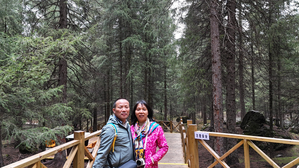 漫山遍野的天山冷杉,一条步道穿梭其中,游走在步道上,深深地呼吸着饱含负离子的新鲜空气,毫不犹疑的索取着大自然的馈赠。