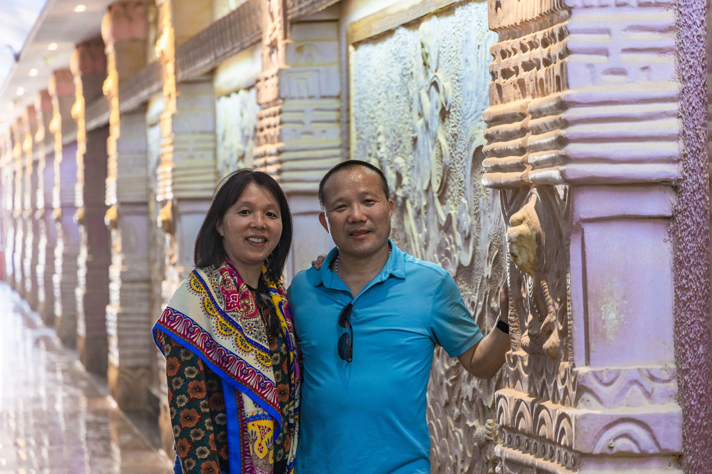 火焰山景区分为地下、地上两个部分,游玩一圈下来大约需要1-2小时左右。一般游客来此都会先前往地下部分,这里是一座长廊式的展厅,展厅的棚顶被设置为天空样子的灯饰,很有特色。展厅内有与高昌古国相关的人物雕像和介绍等,都可以参观一下,了解高昌古国的历史。在展厅里还有纪念品商店和餐吧等。