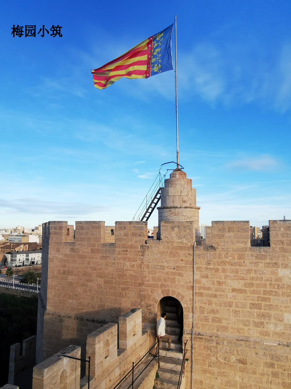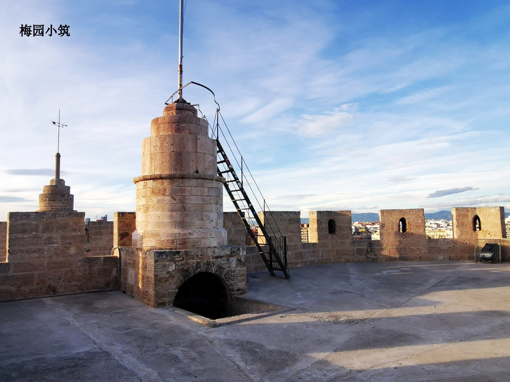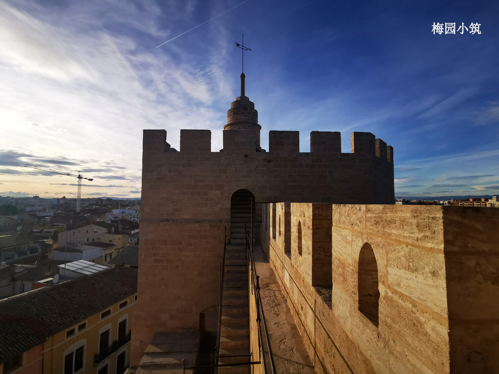 购得门票,开始沿着狭窄的螺旋楼梯向上攀登。楼梯有些陡峭,全部由石头砌成,每一步都仿佛在踏着历史的足迹向上攀登,每一步都让人感受到了历史的折叠,折叠在这塔楼厚重的石墙和古老的建筑结构里,仿佛置身于中世纪。登上塔顶后,眼前的景色令人惊叹:瓦伦西亚老城区的红瓦屋顶、远处的现代建筑以及蜿蜒的图里亚河尽收眼底。站在这里,仿佛能听到中世纪士兵的脚步声和城市的喧嚣。