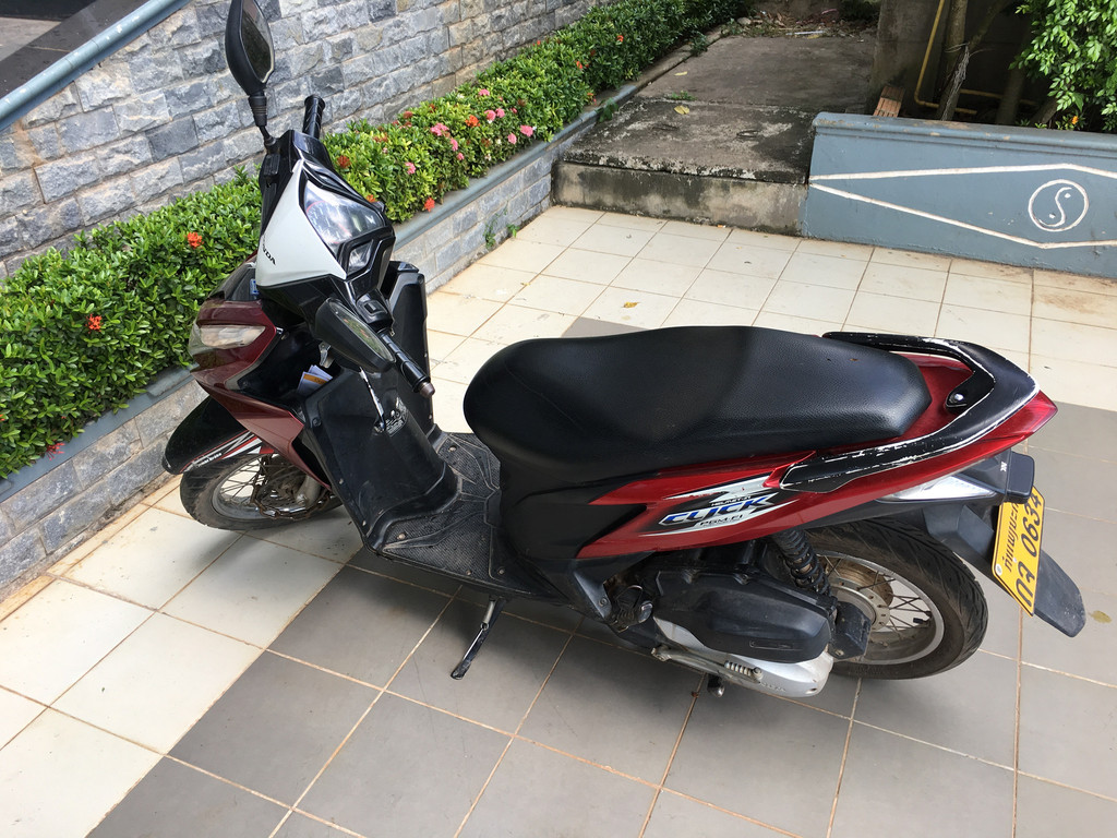 第二天我就租了台电单车到附近京景点逛。途中拐弯闪避对头的越野车时不幸翻了车,还好只受了点皮外伤