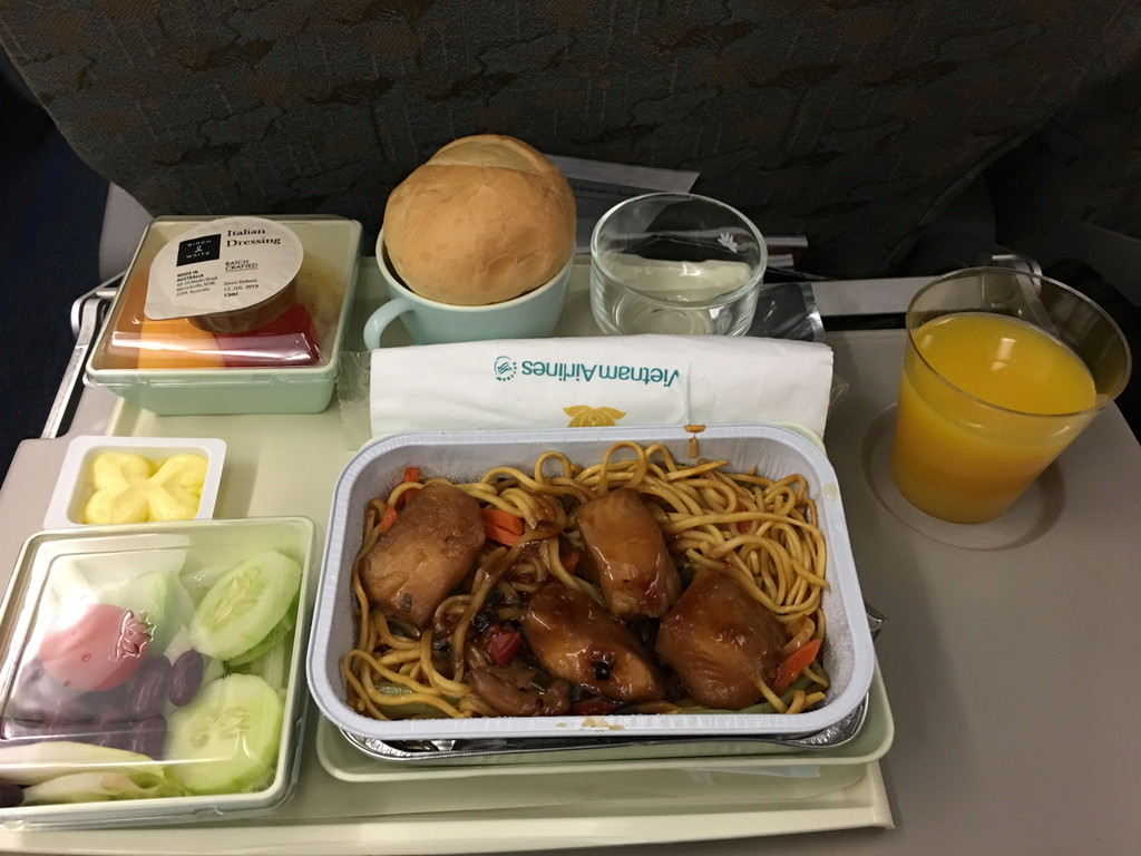 回程是2程转机,先从万象飞到柬埔寨金边,让后飞到胡志明市,最后再到香港。还好越南航空的飞机餐蛮好吃
