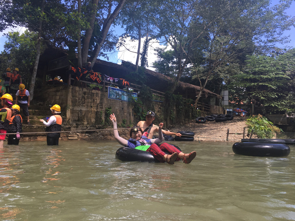 溶洞是以Tubing 方式进去,基本上就是大家就坐在大轮胎上,拉着绳索在洞穴里逛一圈