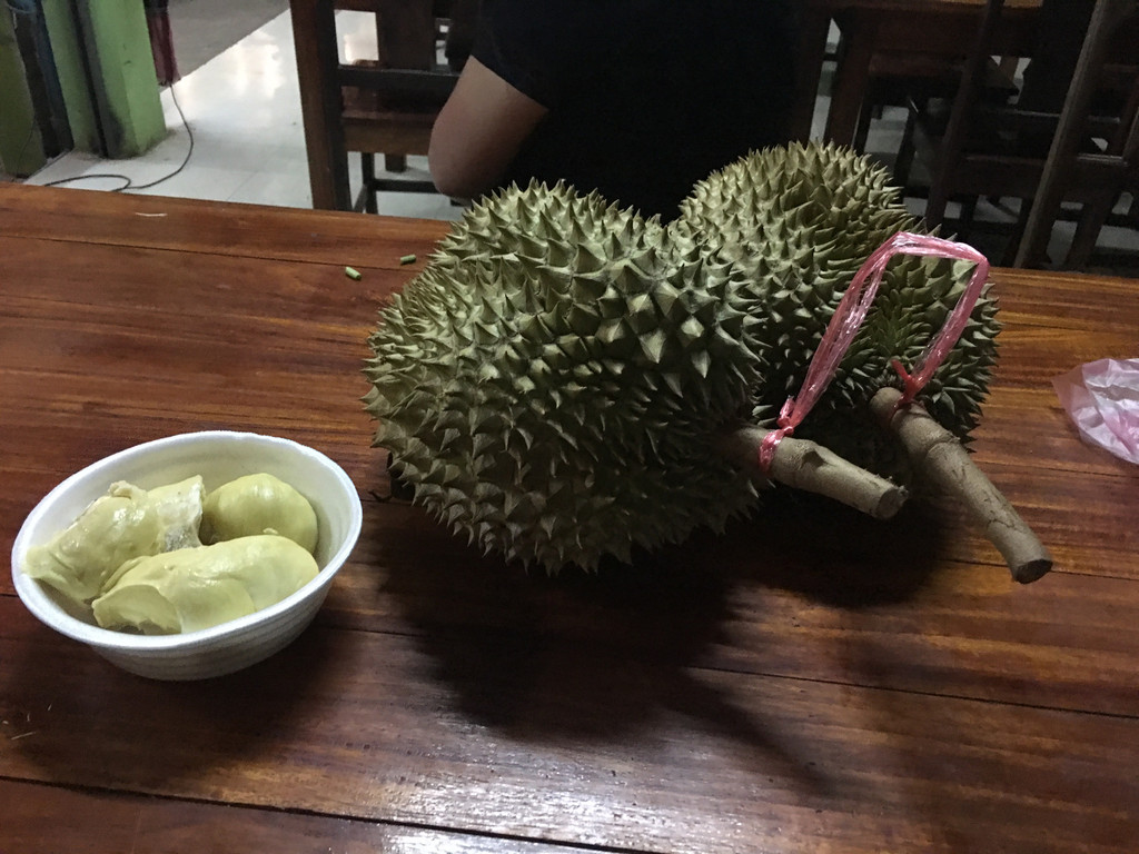 晚上跟团友吃了这里的第二顿西餐。经过街市时,即场买了个榴莲吃