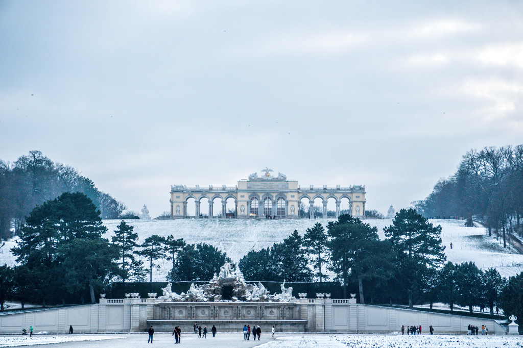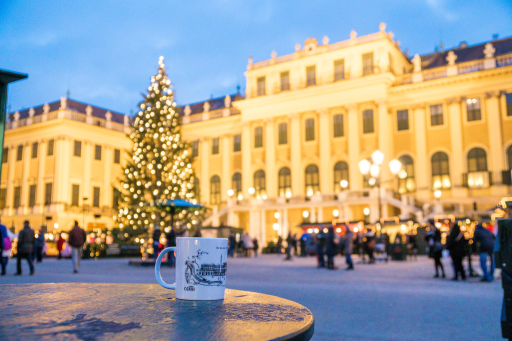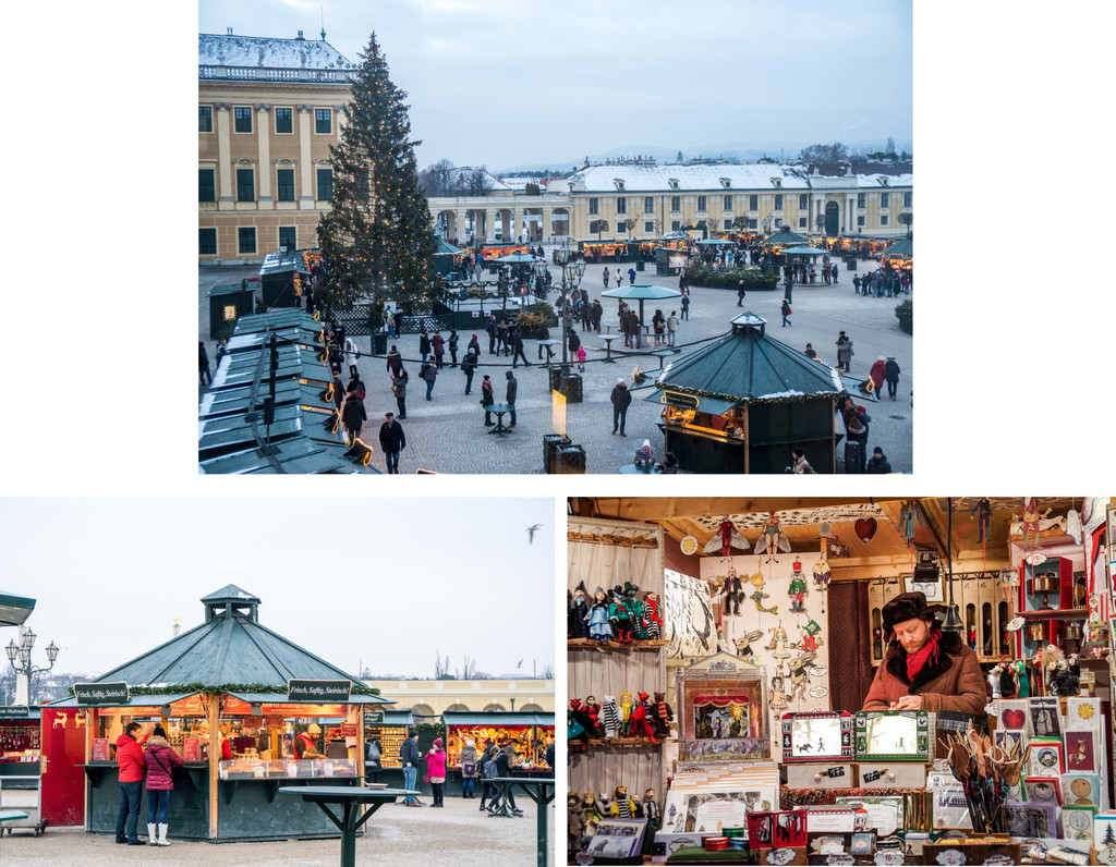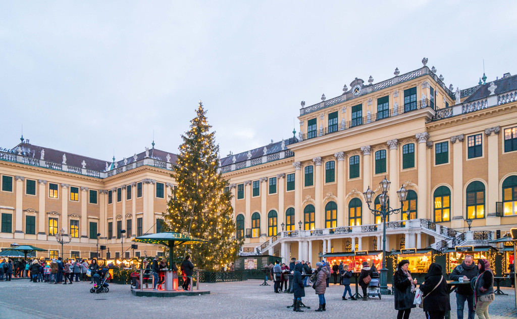 美泉宫前的广场因为圣诞季的到来而被装点成了另一番模样,游客们逛累了皇宫可以尽情徜徉在美泉宫圣诞集市上,喝下一杯热巧克力,缓解疲惫,也可以在夜晚好好观看美泉宫外观。