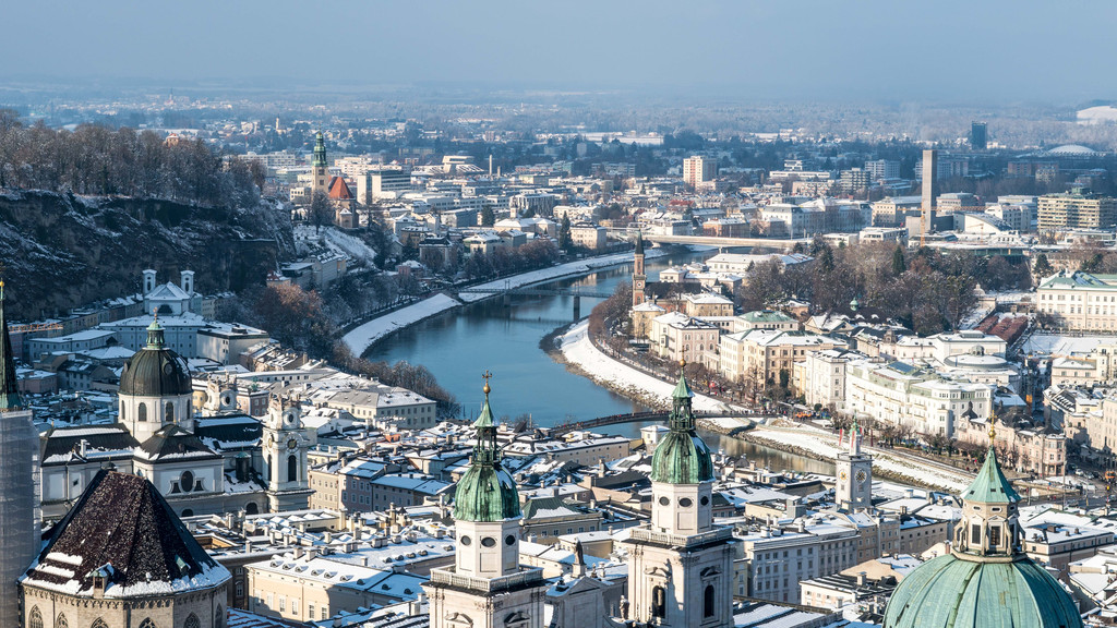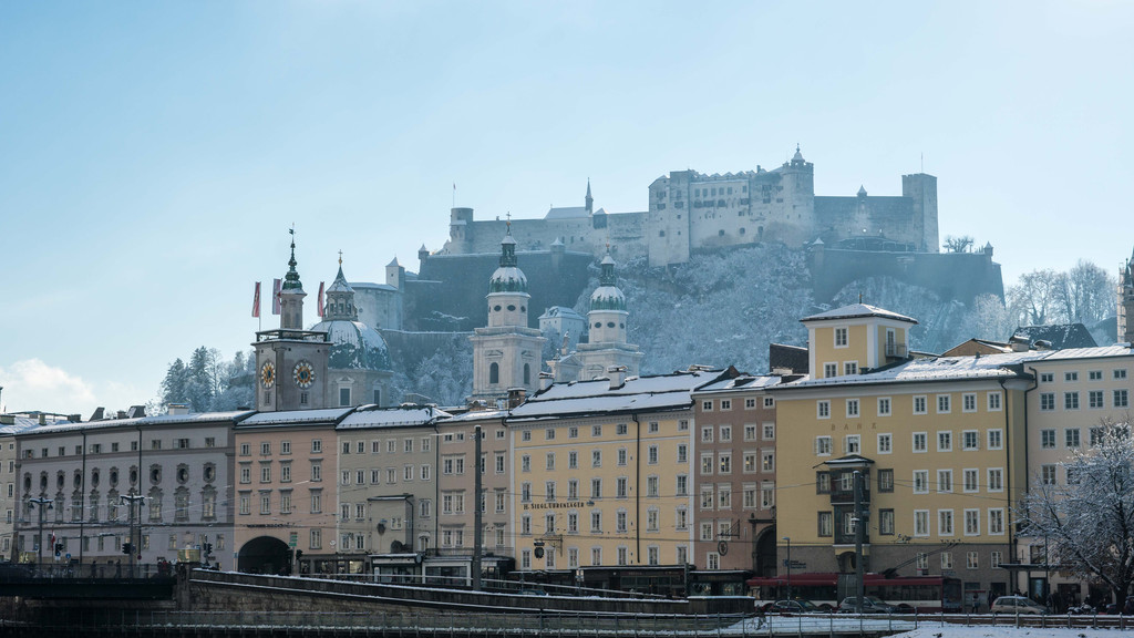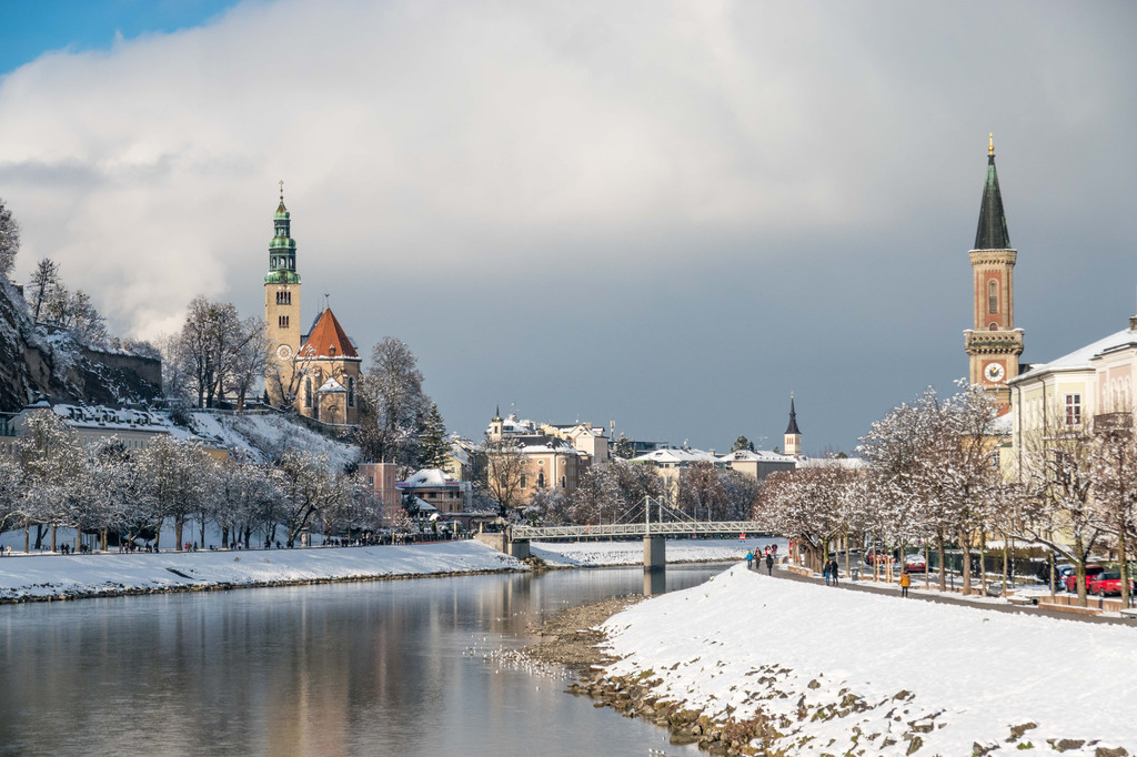 我特别幸运的遇上了大雪过后晴天的萨尔茨堡,洁白的“糖霜”覆盖了整座城市,在蓝天的映衬下,让人觉得美的不真实!