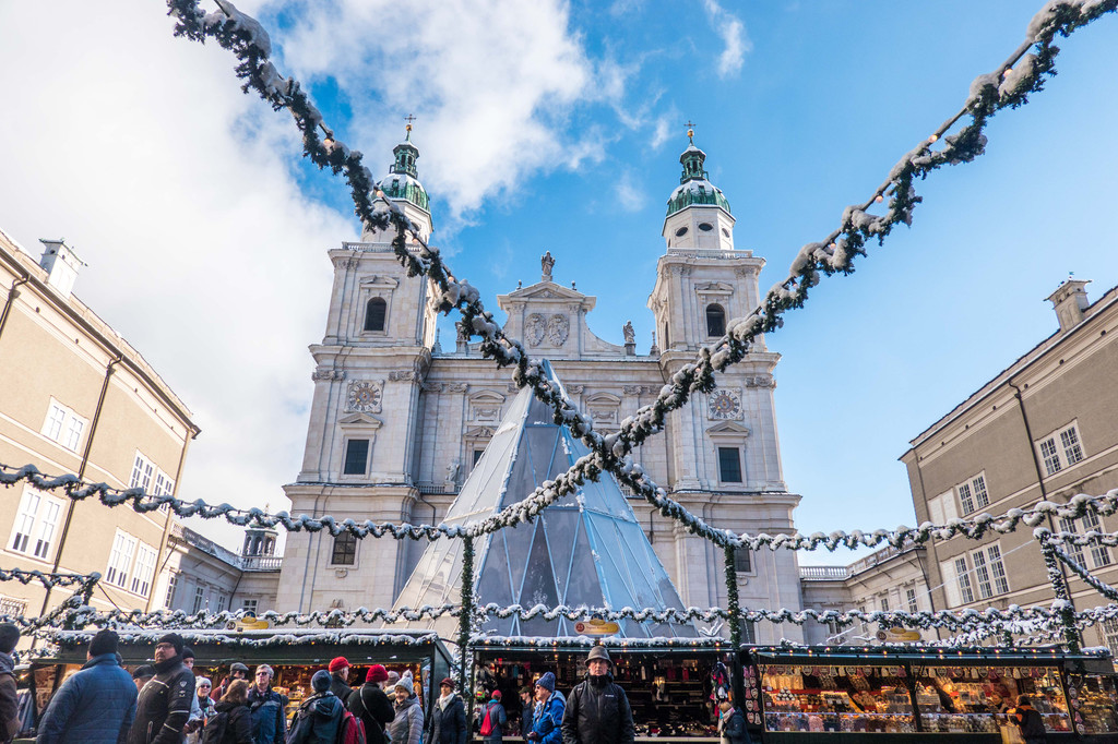 在我到来的圣诞季,萨尔茨堡大教堂四周满是圣诞市集,人们张罗着贩售各种美食、精致手工艺品,和家人一起在市集上喝杯暖暖的热红酒,然后将那些硕大的巧克力球和浓浓芝士塞进嘴巴里,别提有多惬意了。