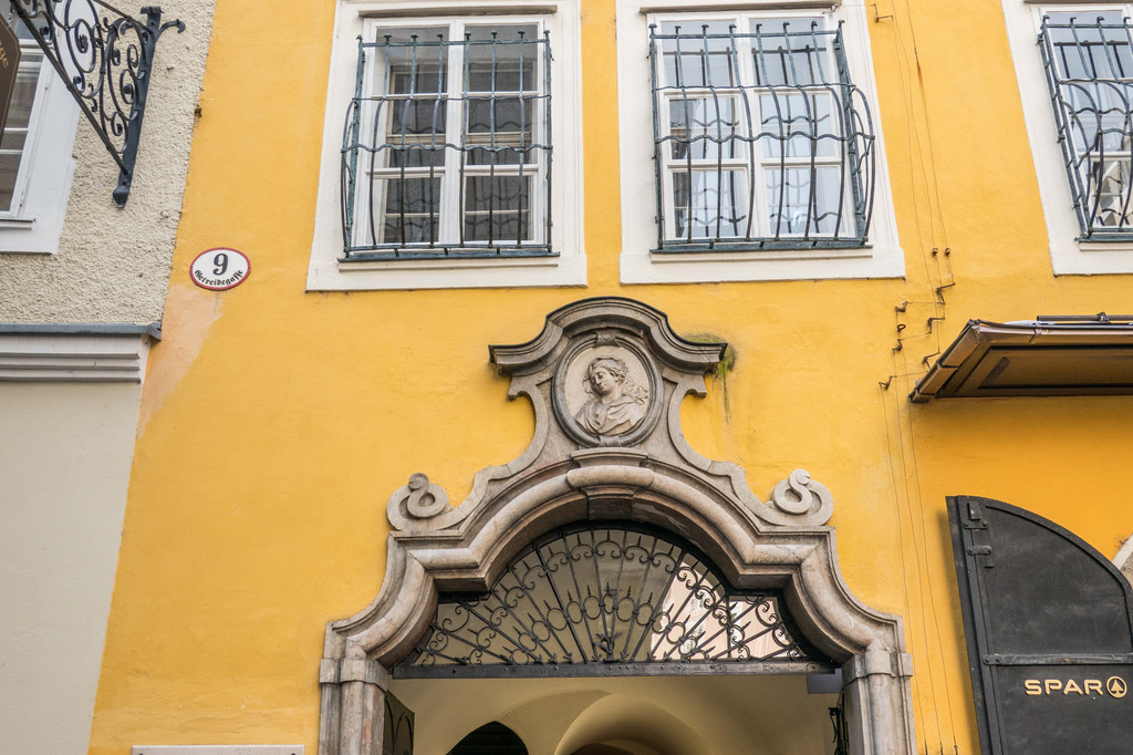 在萨尔茨堡成家立业的利奥波德,与妻子总共生了7个孩子,然而仅一对姐弟存活,他们就是音乐神童莫扎特和姐姐安娜。莫扎特的出生地位于萨尔茨堡老城区主街粮食胡同9号,一幢意式的黄色房子内。