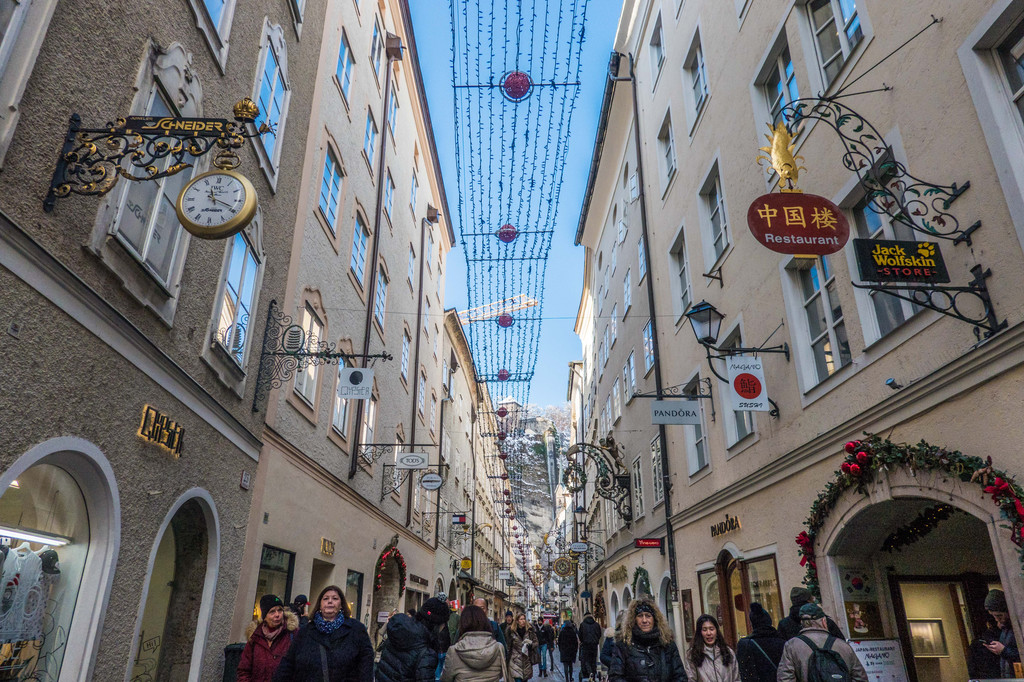 莫扎特出生屋所在的粮食胡同(Getredegasse),算是萨尔茨堡老城中最热闹的街道了,自古就是当地有名的商品交易街。