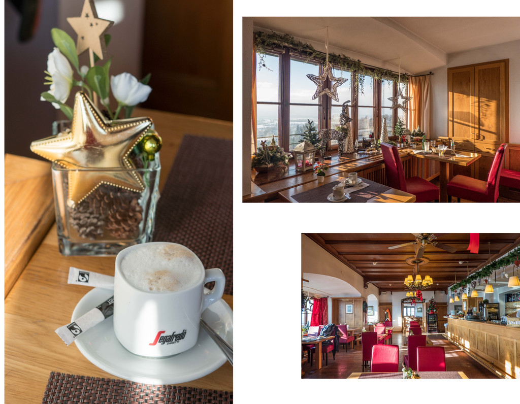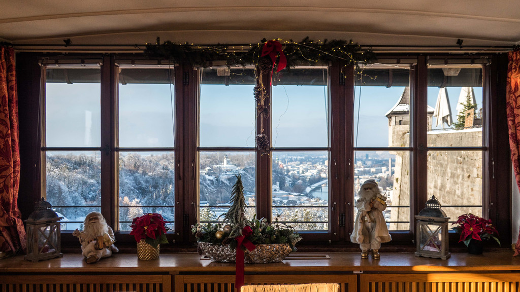 在参观城堡博物馆之余,不妨在城堡一角的咖啡厅品茗一杯奥地利咖啡,目光透过被圣诞饰品装饰一新的玻璃窗,可以欣赏到由远及近如画一般的风景。