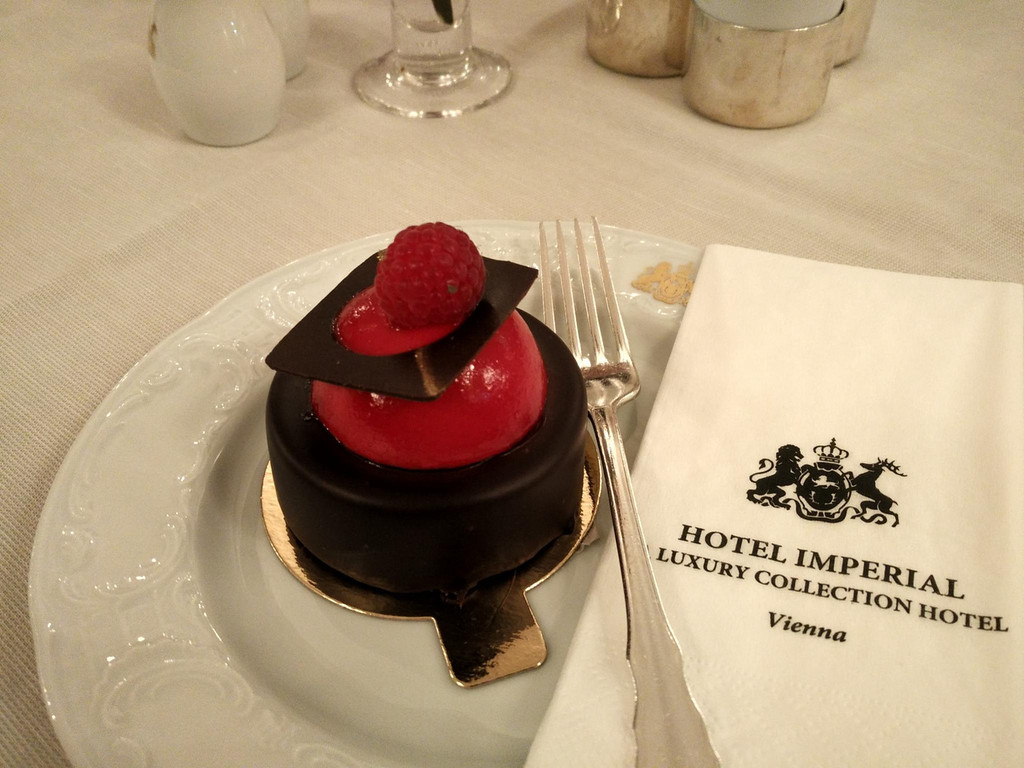 另一家有钢琴演奏的地方,就是Hotel Imperial,他家的招牌蛋糕有个小莫扎特在上面,可是我点的却是这款红桑子巧力蛋糕,酸酸甜甜的,巧克力味很香浓,也很香滑,晚上人不多,想静静地吃甜点的可以去这里。