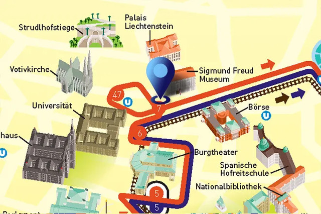 🚌 红线:Liechtensteinstraße 站 / 蓝线:Sigmund Freud Museum 站