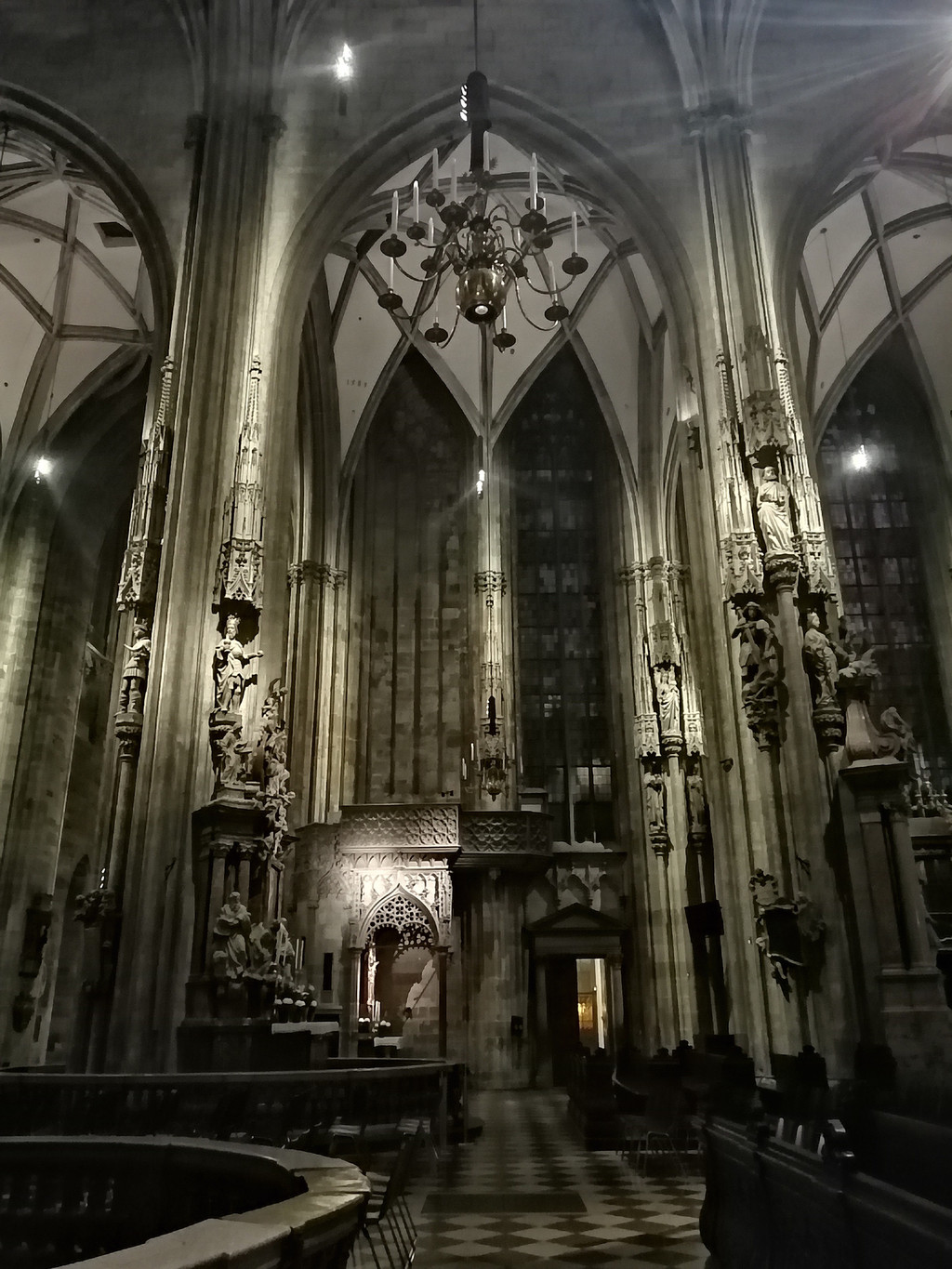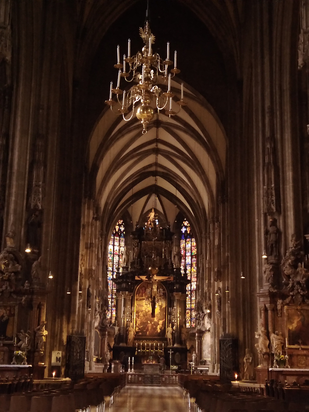 教堂宏大的管风琴,哥特式布道坛,“忧伤的耶稣”雕像,精雕细琢的巴洛克式祭坛。