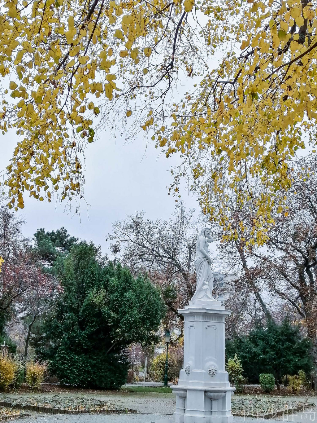 漫步公园内寻觅众多音乐家的雕像,施特劳斯拉小提琴的金色全身雕像。