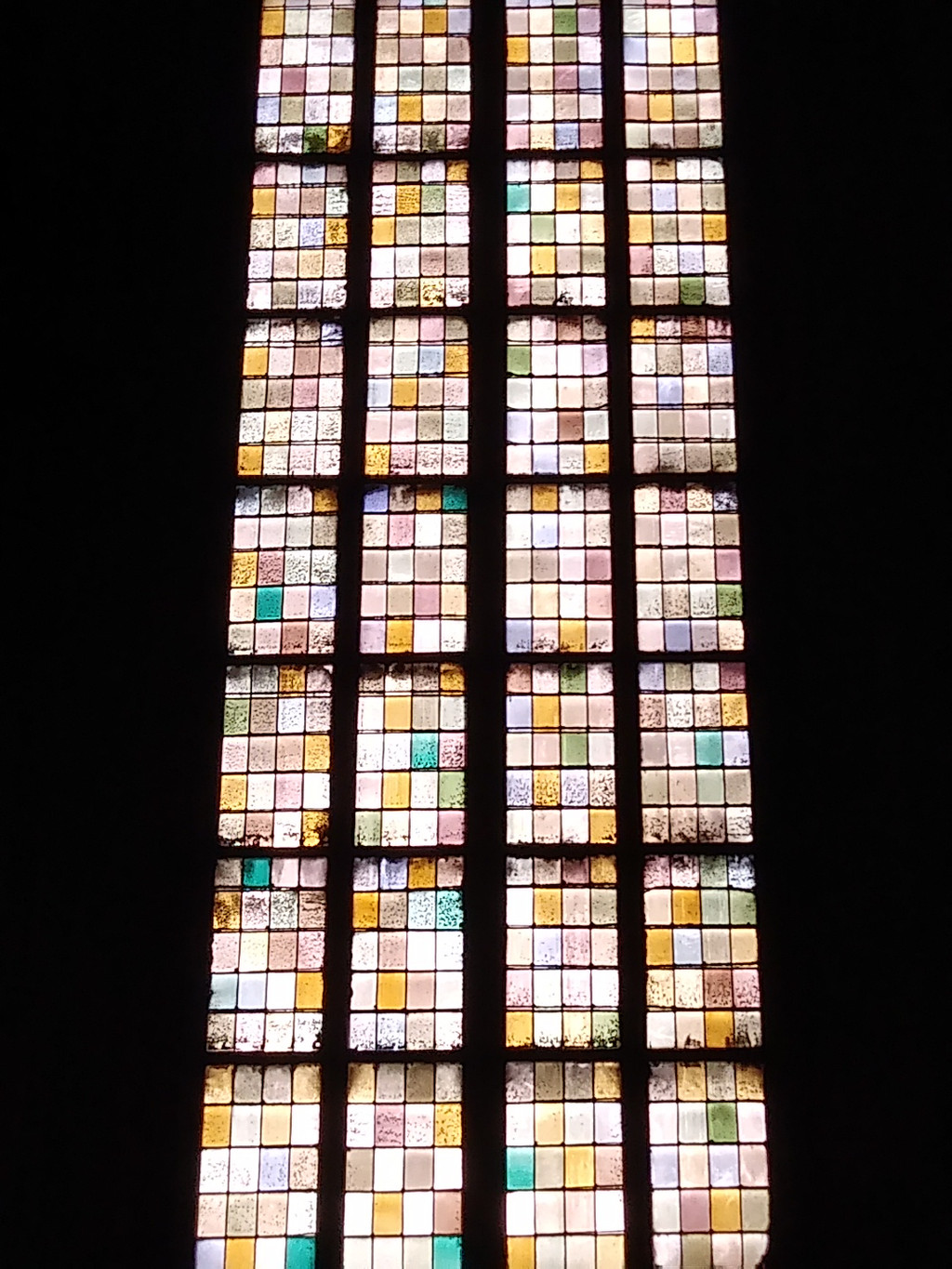 教堂内部阳光透过色彩鲜艳的彩绘玻璃窗照进教堂,形成了梦幻般的光晕。