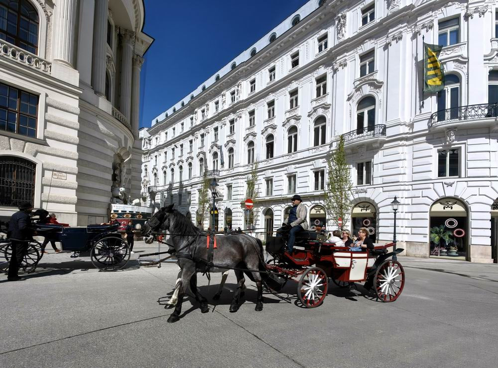 在维也纳的老城区,随处可见两匹高头骏马拉的游览马车。照片摄于维也纳。