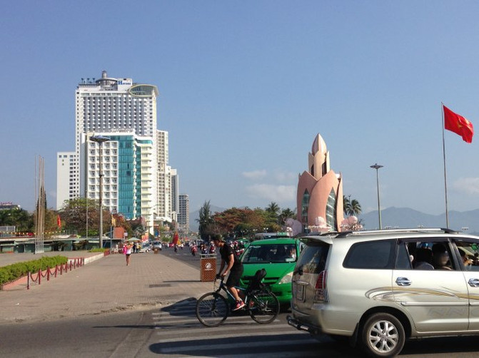 我是中午到的岘港市区,要去海滩边上的旅馆非常不方便, 和摩的司机鸡同鸭讲了半天他才明白, 但他对那里的路根本就不熟,问了海滩附近大约7-8个出租车司机才总算把我送到了旅馆.讲好2.5美金的,给了3美金.结果没零钱找, 也就算了.我在之前就用手机找过这家旅馆,6个美金,结果入住时要价8美金,我把手机上的信息给老板娘看了,她才同意按6美金收费.入的房间发现空调不工作,问了才知道还要另外再付3美金才能使用空调.