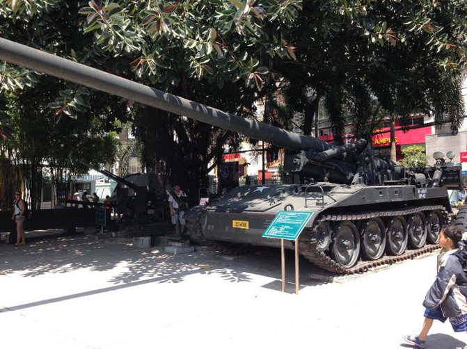 统一宫门前的绿地,高大的树木少说也有70-80年的历史,穿过这绿地前方就是王公圣母教堂。顺着统一宫门前的路一直走大约15分钟就来到了”战争遗迹博物馆 “