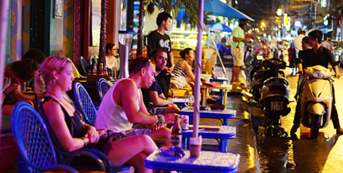 铺天盖地的摩托车轰鸣着来到范五老街享受夜生活