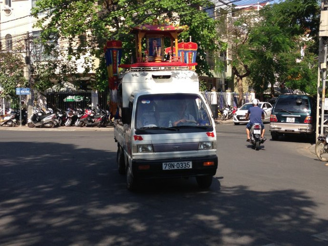这是出殡车,竟然还有警察开。正值春节连续两天我都遇上了出殡车。