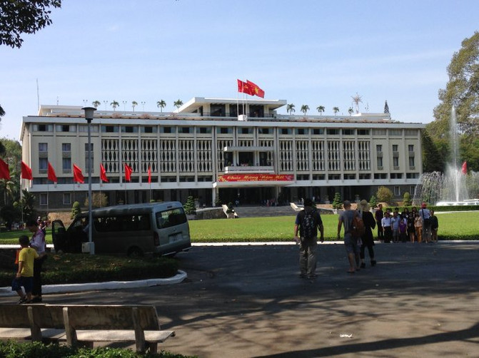 统一宫是胡志明市最重要的景点之一,曾是南越政府权威的象征。通过统一宫几乎可以看到近代越南的一整段历史。统一宫由法国驻越南南方总督拉格兰帝耶在1868年开始建立,当时还叫总督府,1871年建成后取名“诺罗敦宫”。1954年西贡政权总理吴庭艳从法国政府手里接过诺罗敦宫,将此改名为“独立宫“成为西贡政权的决策中枢。 1975年4月30日,两辆坦克碾过大门直闯独立宫,降下了西贡政权的三条旗,升起越南南方临时革命政府旗,为期30年的战争至此结束,同年国家统一政治协商会议在此召开。现在,统一宫成为召开政府会议、接待各国元首之地,同时也是国内外游客可参观的历史遗址。