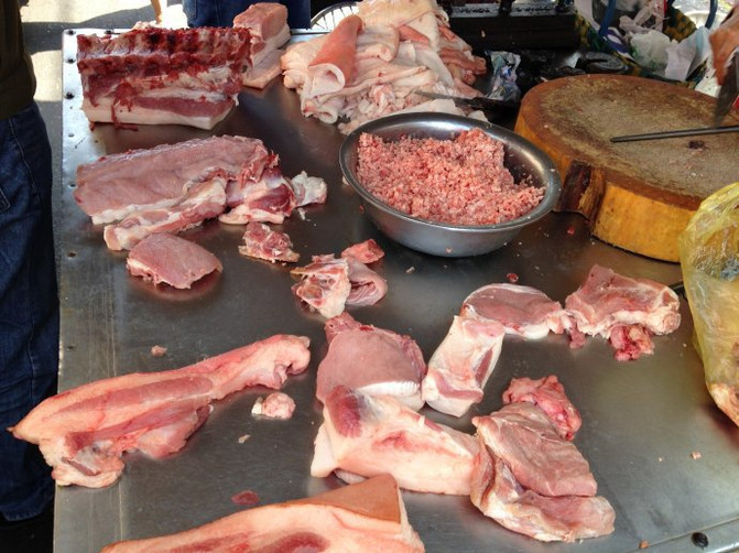 出来半个多月没吃红烧肉了, 连见也见不到. 看到市场上的生肉真想吃几块啊