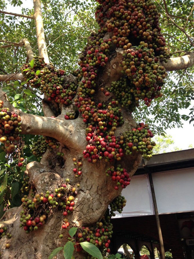 中间休息时发现了这颗奇怪的树, 果子直接结在树干上,谁能告诉我这是什么树吗?这果子能吃吗?