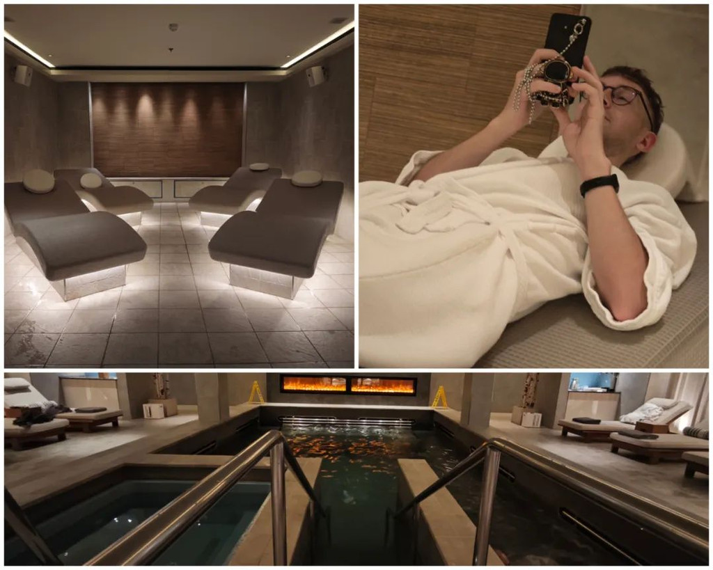 5️⃣水疗和健身中心免费使用,撸铁的脚步在大海上也停不下来。特别要推荐的是水疗中心的冰火两重天,寒冷的冰窟和北欧桑拿,还有按摩泳池,这种在城市里面动仄几大百的体验,在招商伊敦号上居然可以免费体验!不敢相信!(林柏宏脸.jpg)