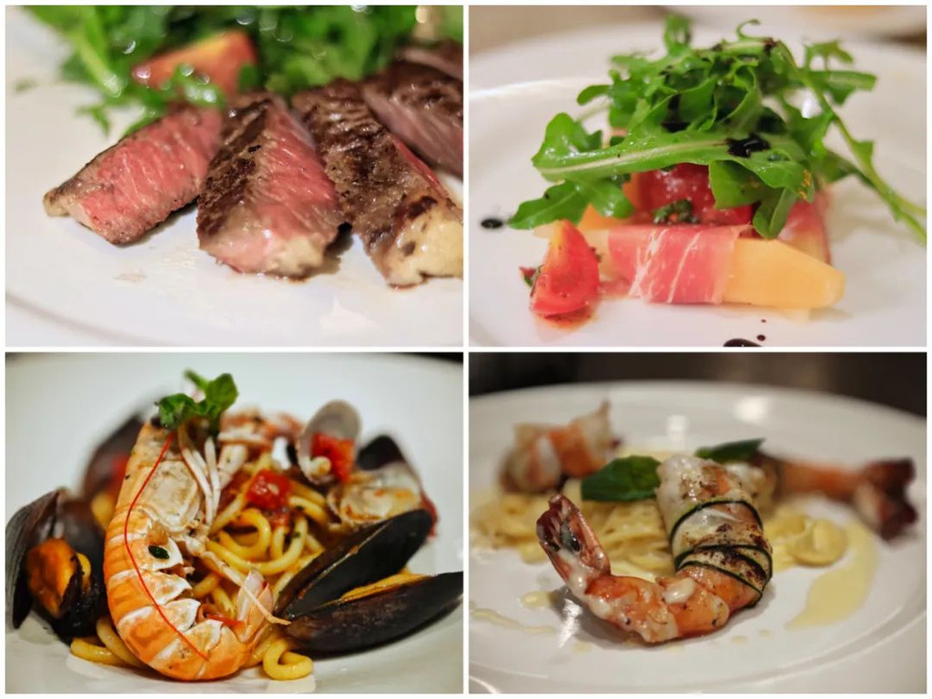 这里的菜单是按照《马克·波罗游记》为灵感而创的特色菜。我个人建议,前菜火腿和芝士和奶油汁烩青口贝是一定要试的。另外,素食者推荐牛肝菌意大利烩饭,大虾胡瓜卷天使意面是你不吃我会冲上船帮你下单的程度。火兔建议大家可以多给意大利餐厅机会,尝试一下不同的口味。