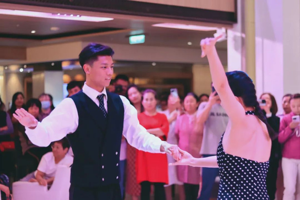 火兔这个航次,还有一个在大厅举办的复古舞会,当《给我一个吻》《南屏晚钟》等歌声响起,穿着西装和波点裙子的舞者畅快起舞,仿佛来到了王家卫《繁花》的片场。
