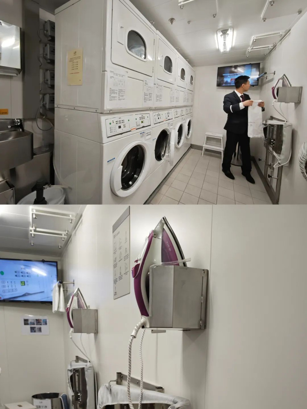7️⃣作为在海上的家,招商伊敦号不仅提供付费的衣服送洗服务(价格可是比酒店便宜多了),还提供免费自助洗衣间,洗衣机干衣机洗衣粉一应俱全。烘干机洗出来的衣服暖暖软软,是幸福的感觉。