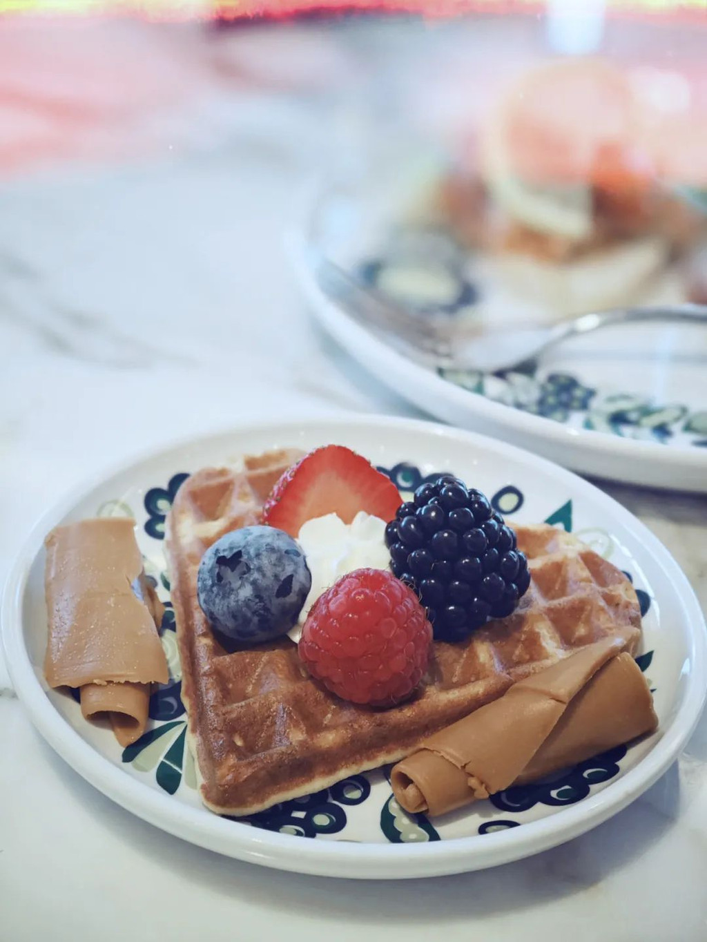 Mamsen是维京游轮董事会主席哈根先生的母亲,菜单上有她传承下来的北欧点心。华夫饼配上褐色羊奶酪,这个是必吃选项,毕竟下一次要有机会吃可能真的要去到北欧才行了!