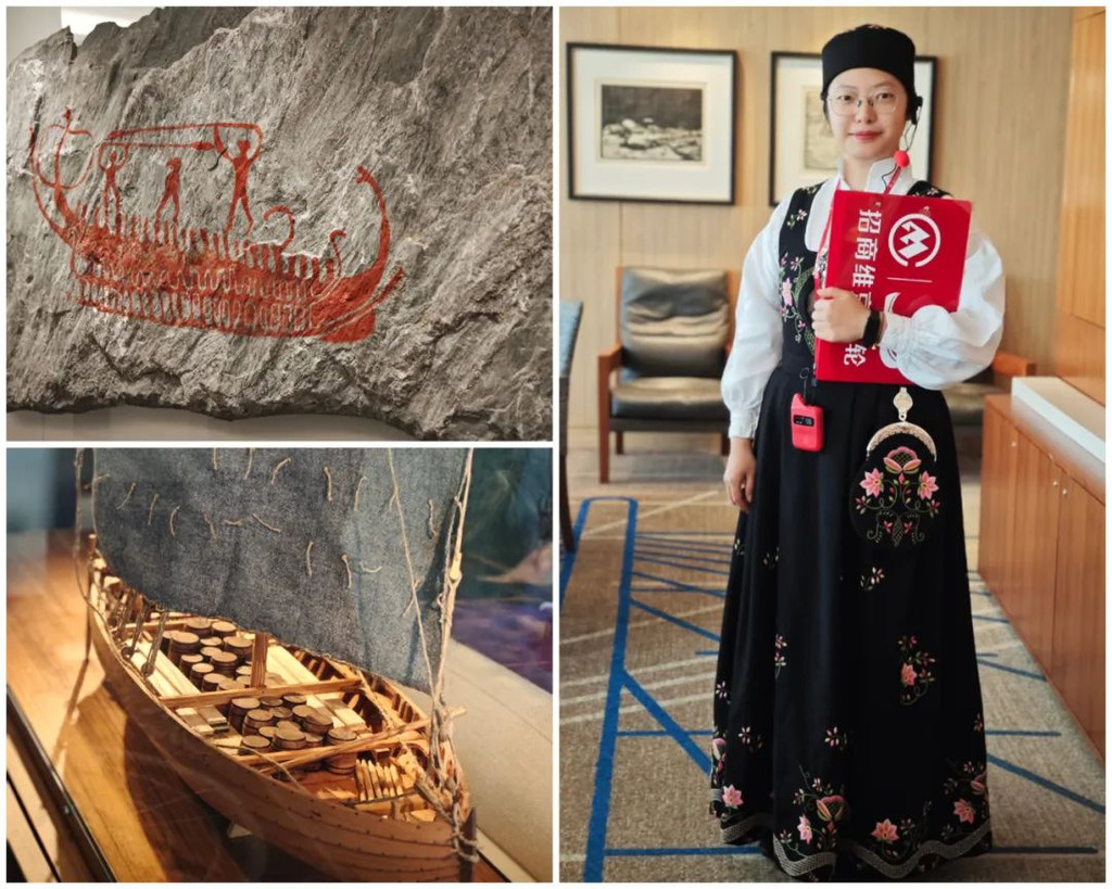北欧文化导览知道了邮轮上好多隐藏的关于北欧的风俗和艺术品,对招商伊敦号的爱又多了十分。导览小姐姐身上的北欧传统服饰由纯羊毛制成,据说巨重无比,从不远万里的北欧而来。