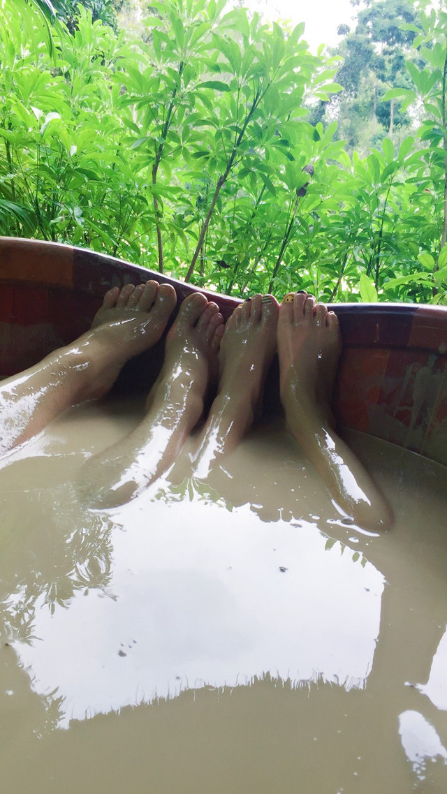 体验的蚕岛海景泥浆浴,泥浴是指将含有矿物质、有机物、微量元素和某些放射性物质,包括富含氯化钠硅酸盐的矿物质泥浆从地下百米深采集上来,人体浸泡其中,对皮肤有排毒和修复作用,并对神经和关节有保护调理作用。