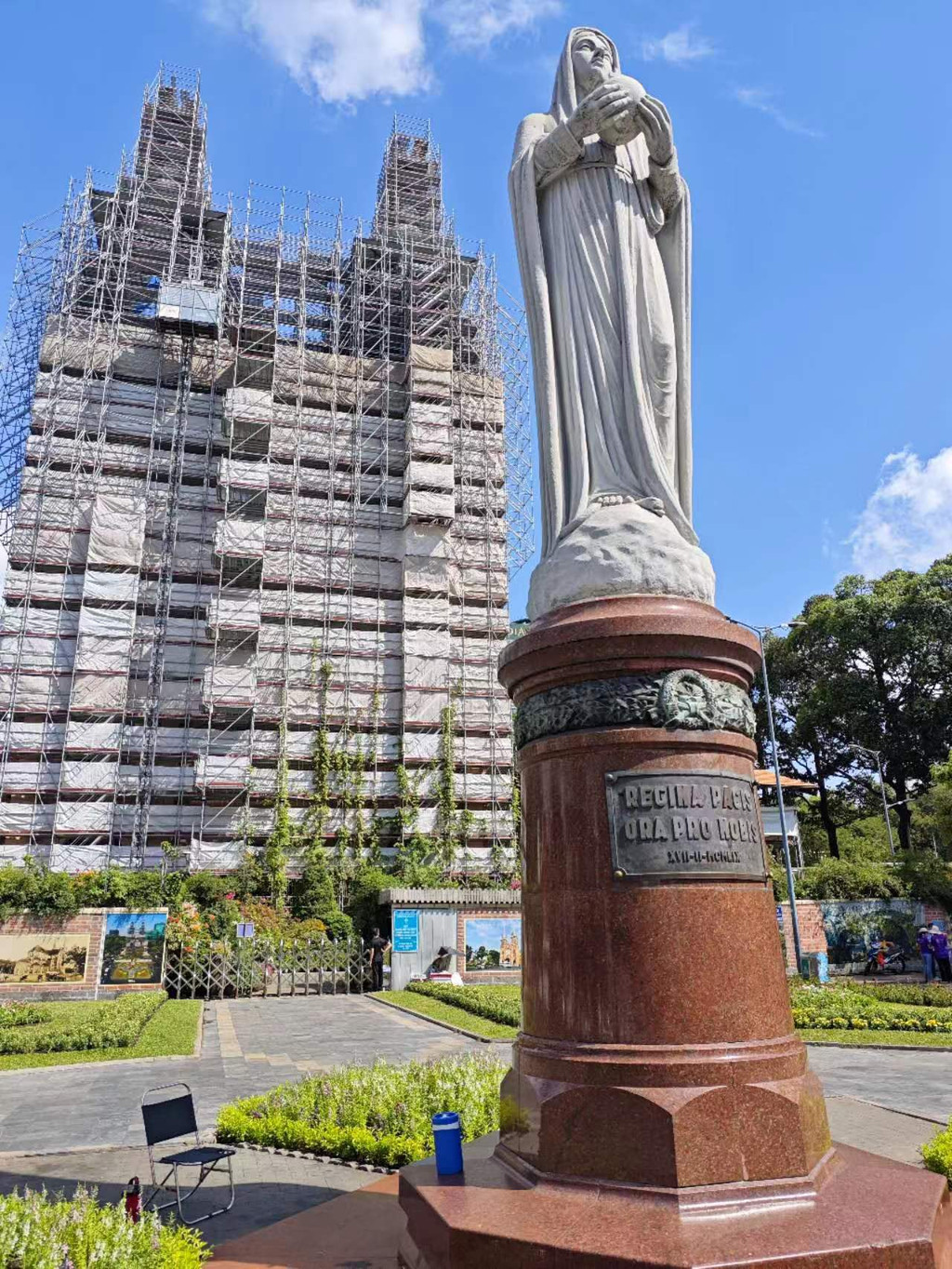 西贡圣母大教堂是胡志明市的标志性建筑之一,因其使用红砖建造,又被称为红教堂。这座教堂建于19世纪末,为法国殖民时期的产物。遗憾的是建筑物正值装修游客无法参观。